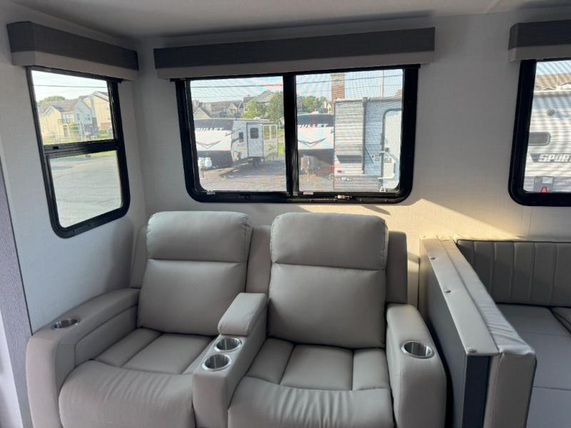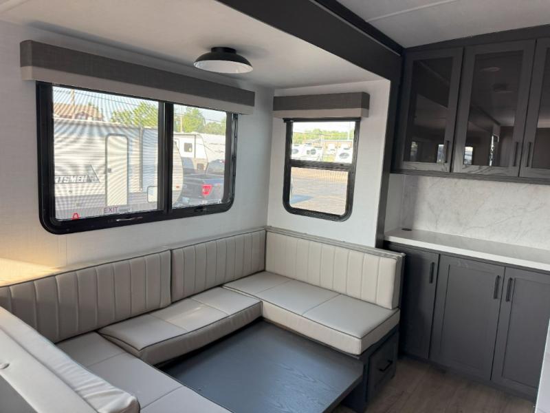 With any Rockwood Signature fifth wheel or travel trailer by Forest River RV, you will enjoy superior construction that includes laminated white fiberglass sidewalls, a radius roof with vaulted interior ceilings, plus radiant foil insulation and an enclosed underbelly for use in all types of weather. Some convenient exterior features include Keyed Alike locks, a rear ladder, a 200W solar panel, and a tire pressure monitor system with a monitor for added safety. The interior offers a One Touch OneControl panel with WeRV app control, for lights, awning, slides, water heater and more, and the Air 360+ omnidirectional antenna with WiFi prep lets you work while away from home if needed. You will also appreciate the interior vaulted ceilings, residential soft close doors and drawers, solid surface kitchen countertops, and designer kitchen backsplash!