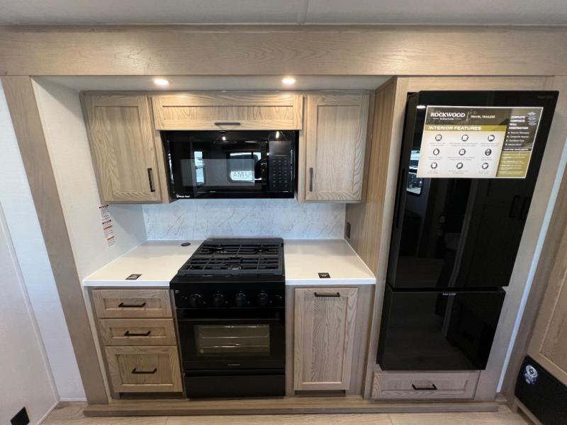 With any Rockwood Signature fifth wheel or travel trailer by Forest River RV, you will enjoy superior construction that includes a fully laminated walkable roof, 6-sided full-aluminum frame, and a painted fiberglass front cap with Clear Coat for added durability. Outside, you'll find a 200W solar panel for off-grid capabilities, slam baggage doors, and Key-Alike lock system for added convenience. Head inside to find soft close roller bearing drawers, roller shades, and residential style gas range. These travel trailer and fifth wheels also feature Goodyear Endurance tires with a tire pressure monitoring system plus Dexter Torflex torsion axles for smooth towing!