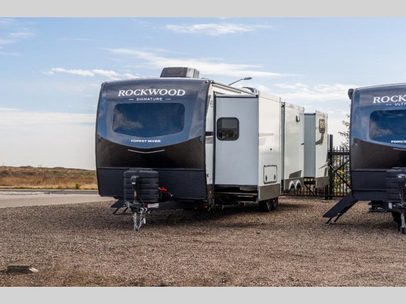With any Rockwood Signature fifth wheel or travel trailer by Forest River RV, you will enjoy superior construction that includes a fully laminated walkable roof, 6-sided full-aluminum frame, and a painted fiberglass front cap with Clear Coat for added durability. Outside, you'll find a 200W solar panel for off-grid capabilities, slam baggage doors, and Key-Alike lock system for added convenience. Head inside to find soft close roller bearing drawers, roller shades, and residential style gas range. These travel trailer and fifth wheels also feature Goodyear Endurance tires with a tire pressure monitoring system plus Dexter Torflex torsion axles for smooth towing!