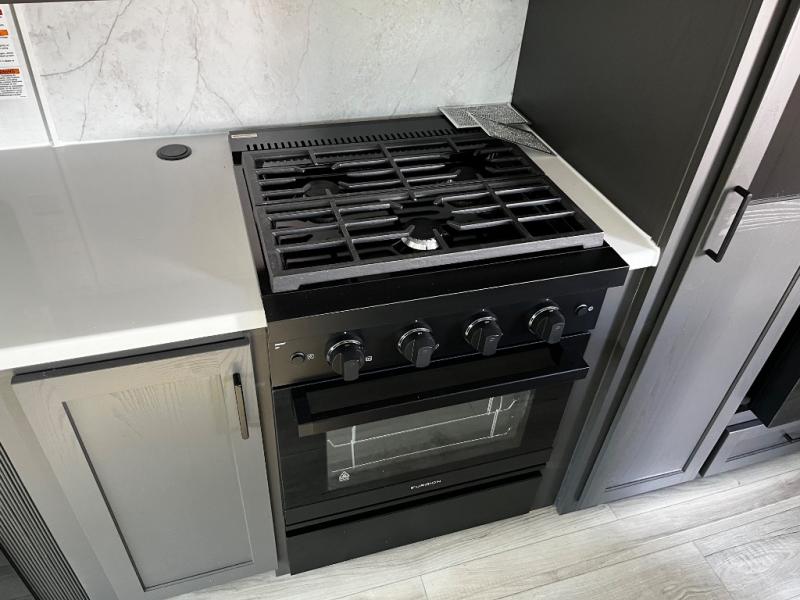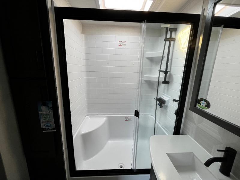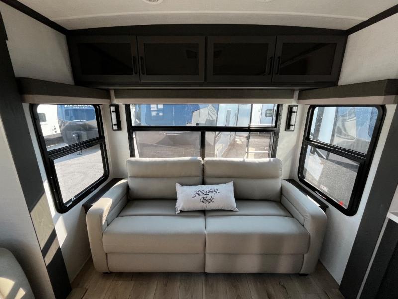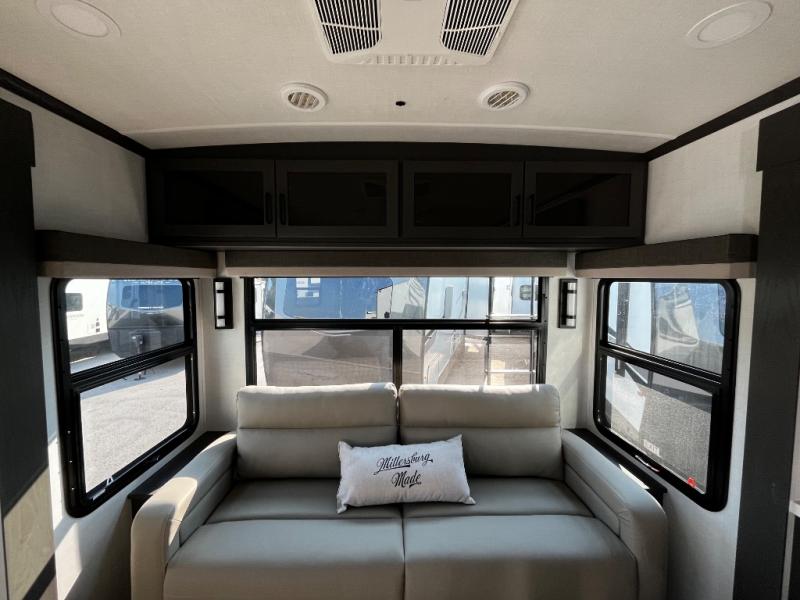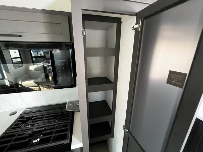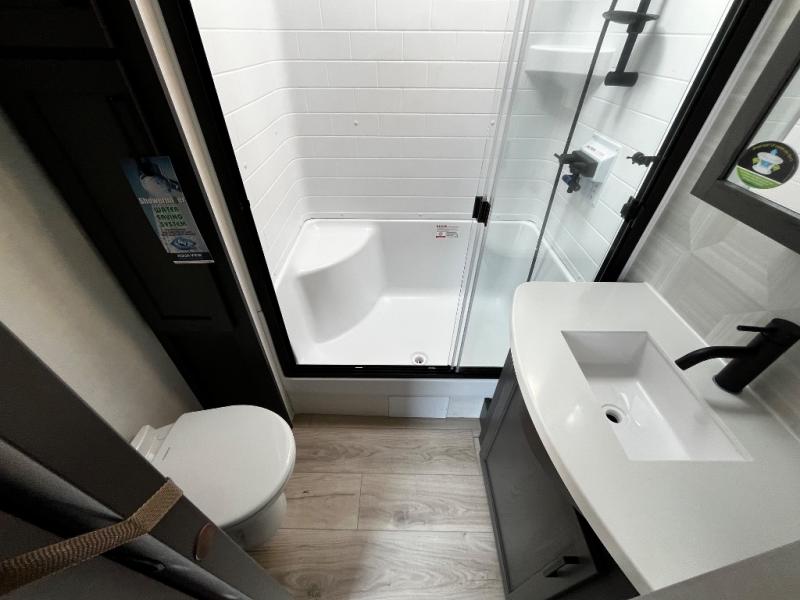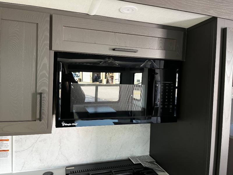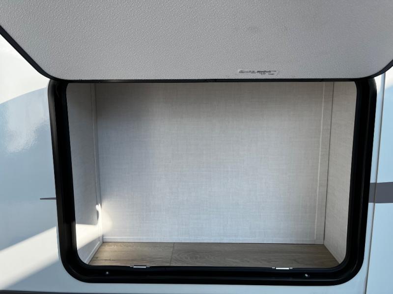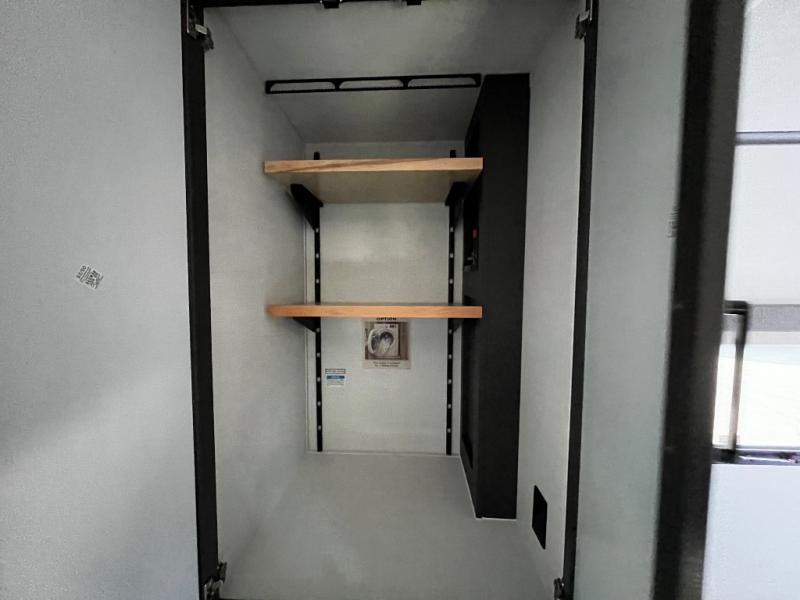 You're going to love the amount of natural light in this model with large windows in the back and the door side. The chef of the group will love the kitchen island, and there is tons of storage space for dishes, food, and knickknacks. The entertainment center with a Smart TV will allow you to watch movies at night, or you may just find yourselves outside under the two power awnings with LED lights. There is also an outside griddle prep here to cook pancakes in the morning. The king bed is sure to bring comfort, and you'll appreciate the large wardrobe to keep your clothes tidy. There is even washer and dryer prep if you choose to go full-time!