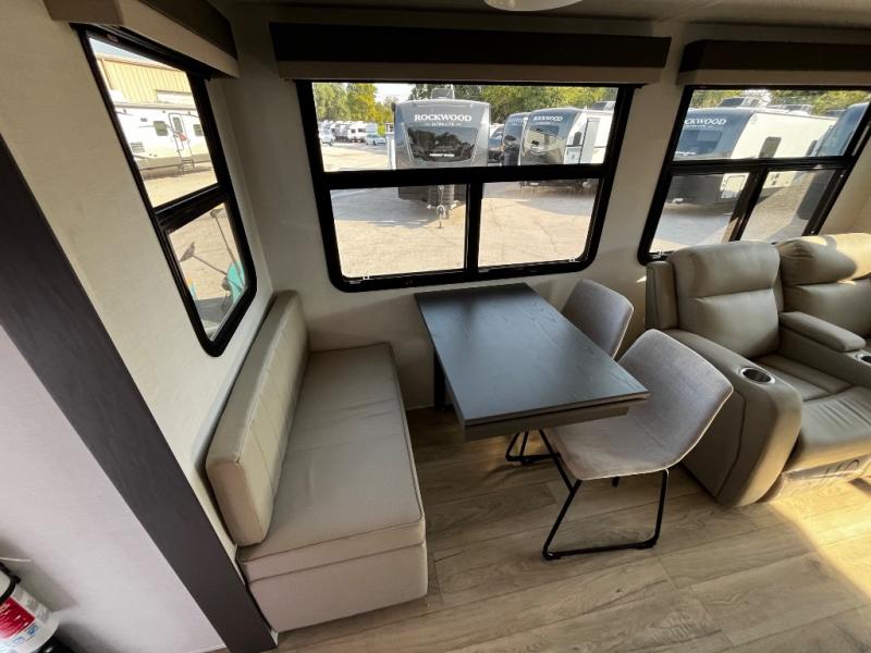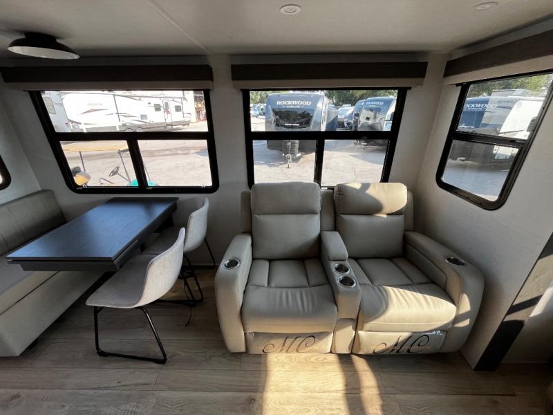 With any Rockwood Signature fifth wheel or travel trailer by Forest River RV, you will enjoy superior construction that includes a fully laminated walkable roof, 6-sided full-aluminum frame, and a painted fiberglass front cap with Clear Coat for added durability. Outside, you'll find a 200W solar panel for off-grid capabilities, slam baggage doors, and Key-Alike lock system for added convenience. Head inside to find soft close roller bearing drawers, roller shades, and residential style gas range. These travel trailer and fifth wheels also feature Goodyear Endurance tires with a tire pressure monitoring system plus Dexter Torflex torsion axles for smooth towing!