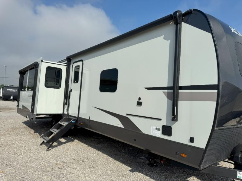 You're going to love the amount of natural light in this model with large windows in the back and the door side. The chef of the group will love the kitchen island, and there is tons of storage space for dishes, food, and knickknacks. The entertainment center with a Smart TV will allow you to watch movies at night, or you may just find yourselves outside under the two power awnings with LED lights. There is also an outside griddle here to cook pancakes in the morning. The king bed is sure to bring comfort, and you'll appreciate the large wardrobe to keep your clothes tidy. There is even washer and dryer prep if you choose to go full-time!