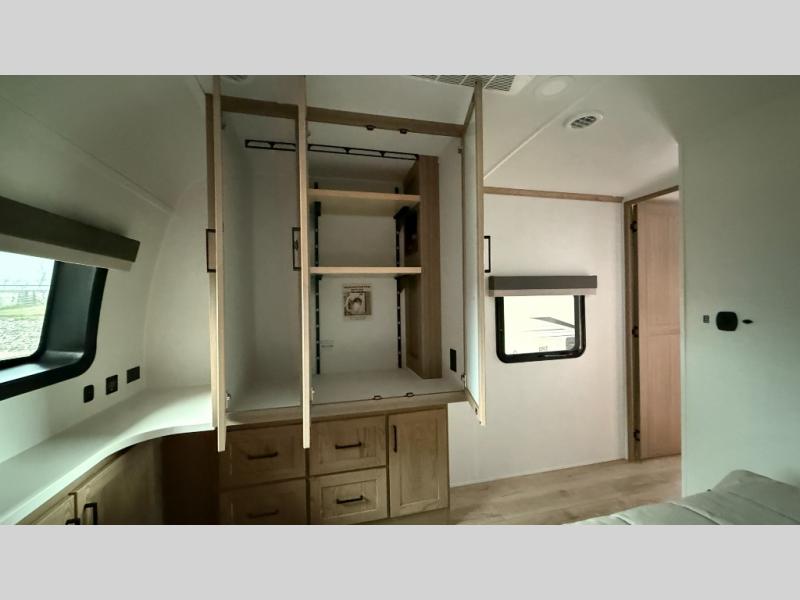 You're going to love the amount of natural light in this model with large windows in the back and the door side. The chef of the group will love the kitchen island, and there is tons of storage space for dishes, food, and knickknacks. The entertainment center with a Smart TV will allow you to watch movies at night, or you may just find yourselves outside under the two power awnings with LED lights. The king bed is sure to bring comfort, and you'll appreciate the large wardrobe to keep your clothes tidy. There is even washer and dryer prep if you choose to go full-time!