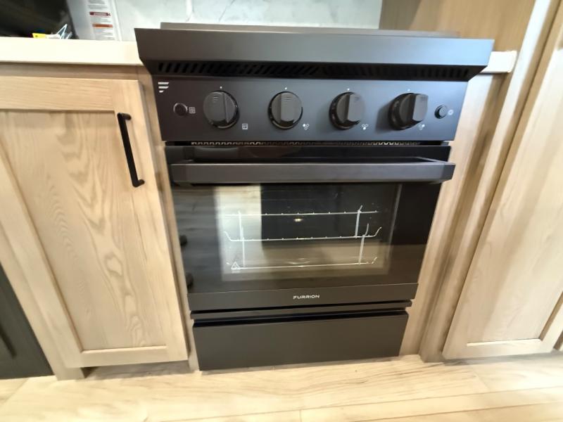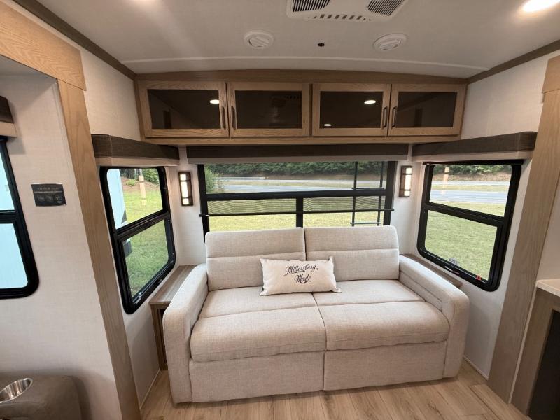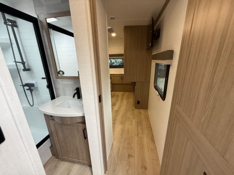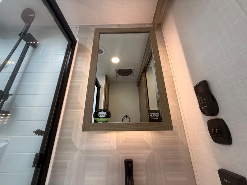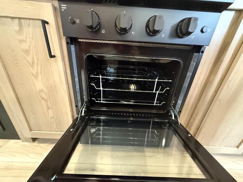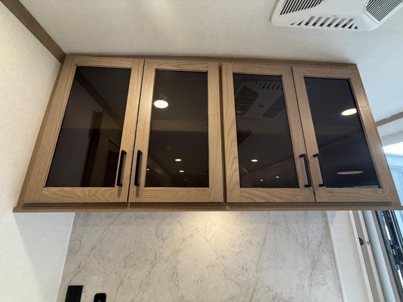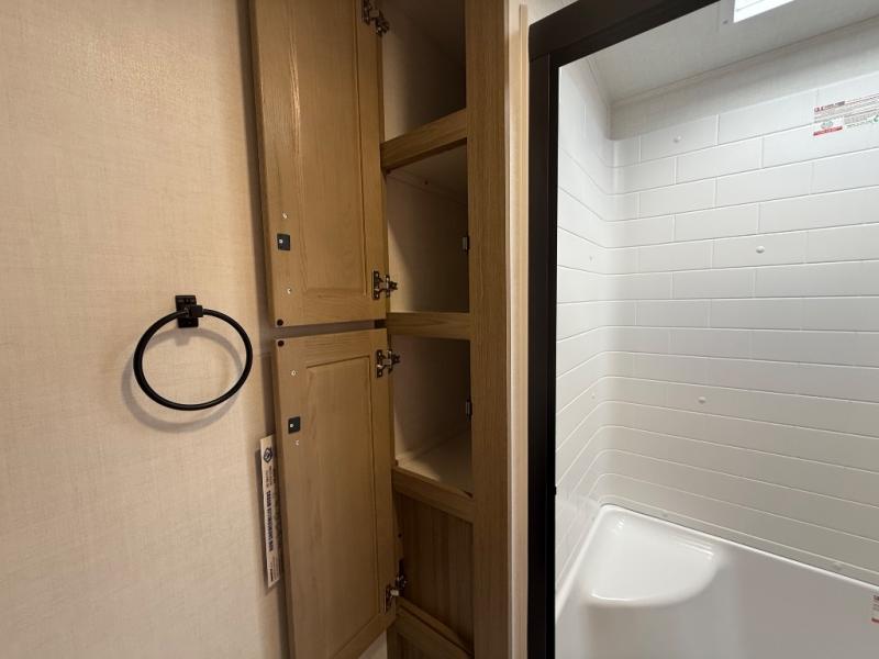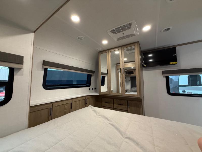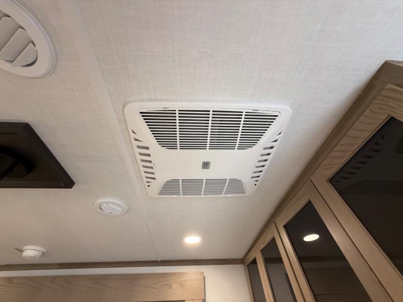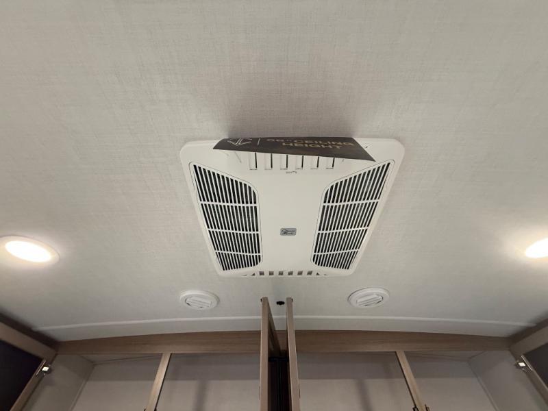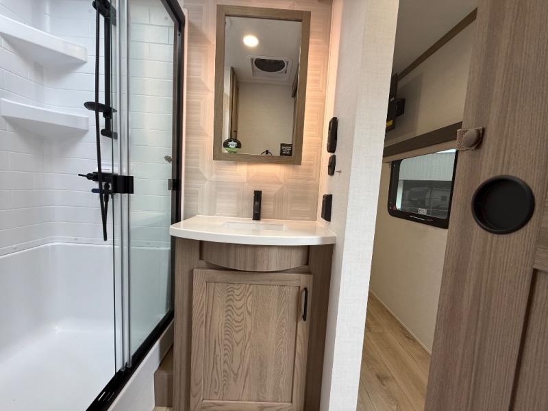 You're going to love the amount of natural light in this model with large windows in the back and the door side. The chef of the group will love the kitchen island, and there is tons of storage space for dishes, food, and knickknacks. The entertainment center with a Smart TV will allow you to watch movies at night, or you may just find yourselves outside under the two power awnings with LED lights. There is also an outside griddle prep here to cook pancakes in the morning. The king bed is sure to bring comfort, and you'll appreciate the large wardrobe to keep your clothes tidy. There is even washer and dryer prep if you choose to go full-time!