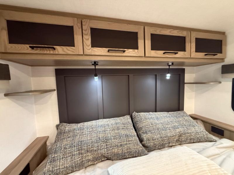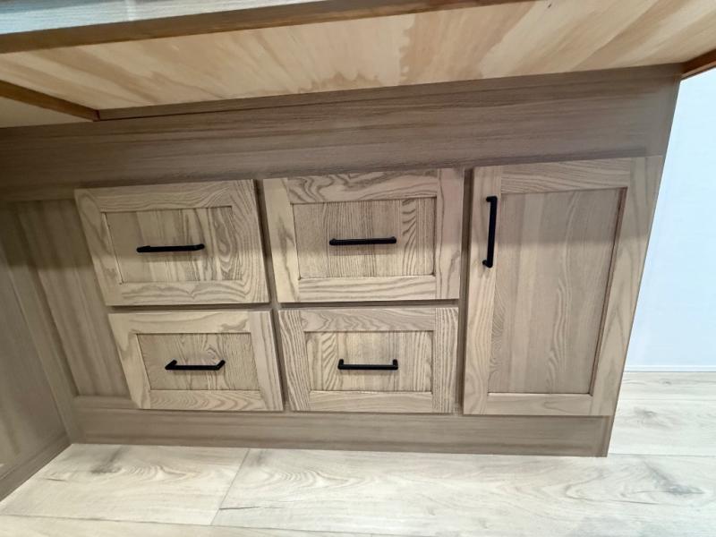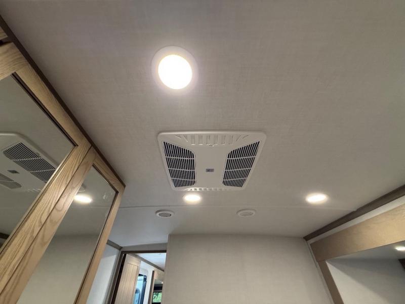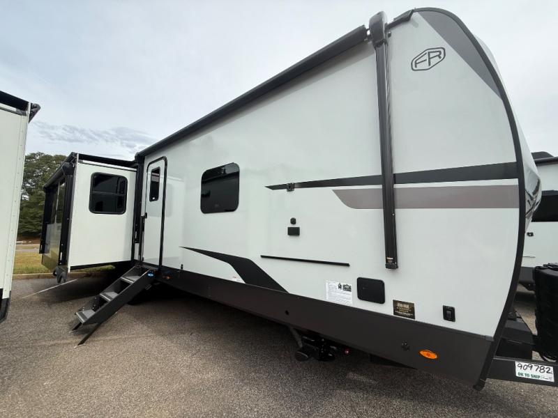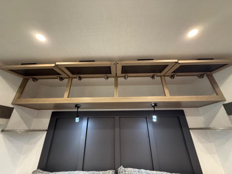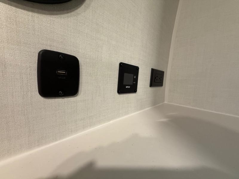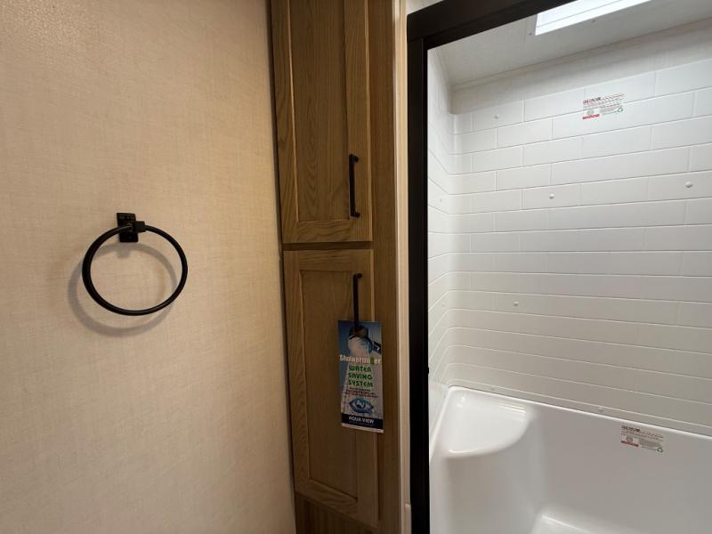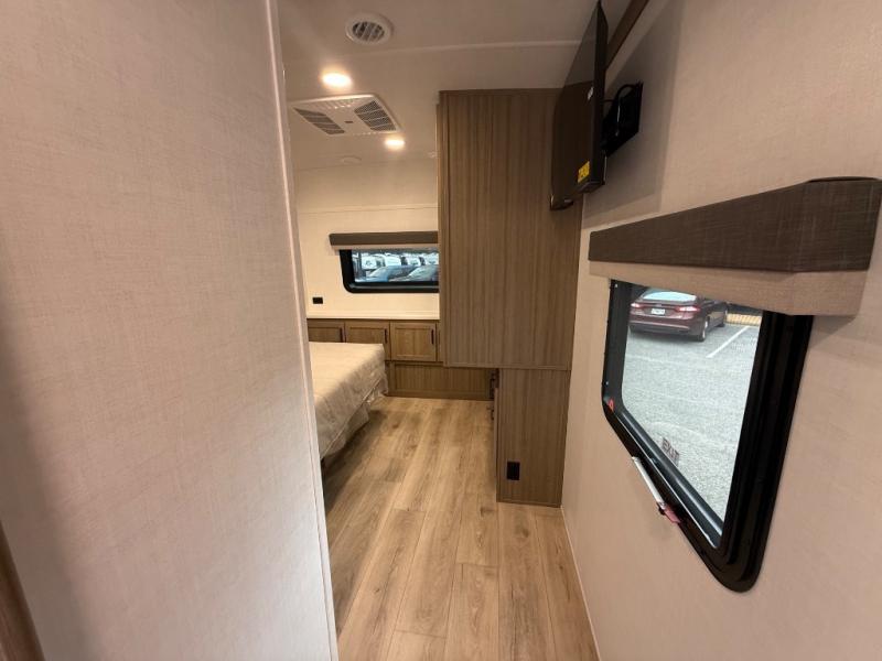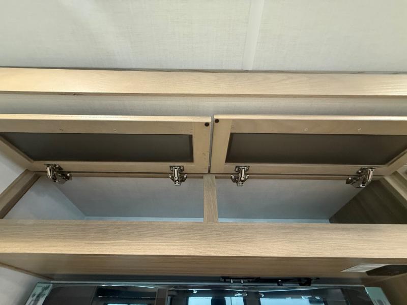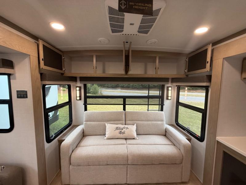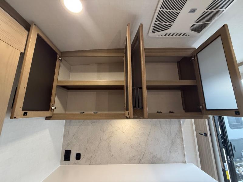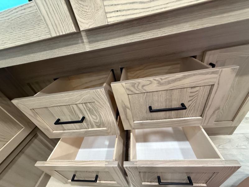 You're going to love the amount of natural light in this model with large windows in the back and the door side. The chef of the group will love the kitchen island, and there is tons of storage space for dishes, food, and knickknacks. The entertainment center with a Smart TV will allow you to watch movies at night, or you may just find yourselves outside under the two power awnings with LED lights. There is also an outside griddle prep here to cook pancakes in the morning. The king bed is sure to bring comfort, and you'll appreciate the large wardrobe to keep your clothes tidy. There is even washer and dryer prep if you choose to go full-time!
