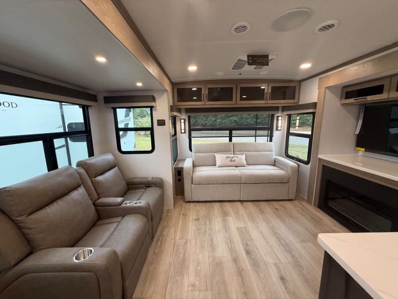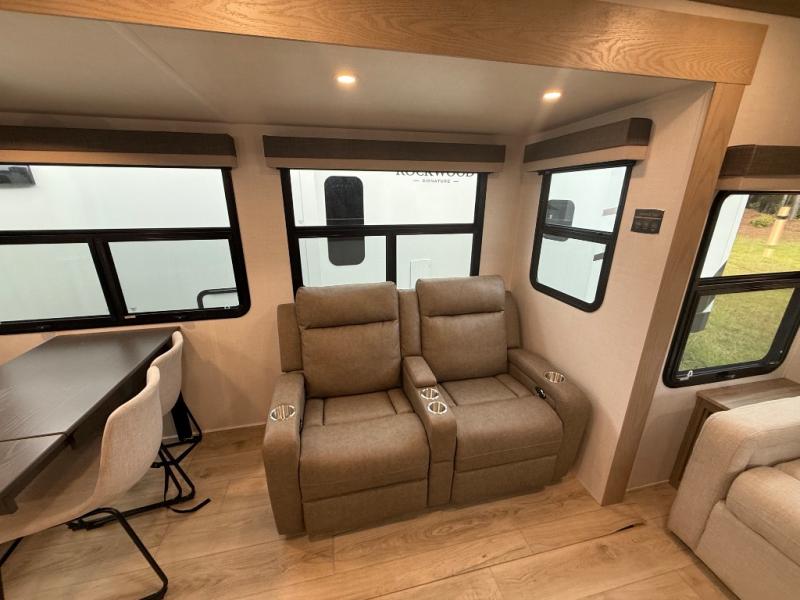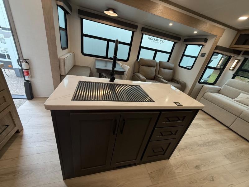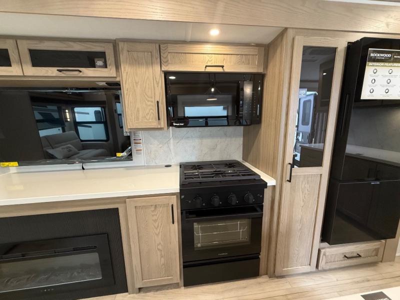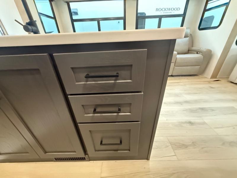 With any Rockwood Signature fifth wheel or travel trailer by Forest River RV, you will enjoy superior construction that includes a fully laminated walkable roof, 6-sided full-aluminum frame, and a painted fiberglass front cap with Clear Coat for added durability. Outside, you'll find a 200W solar panel for off-grid capabilities, slam baggage doors, and Key-Alike lock system for added convenience. Head inside to find soft close roller bearing drawers, roller shades, and residential style gas range. These travel trailer and fifth wheels also feature Goodyear Endurance tires with a tire pressure monitoring system plus Dexter Torflex torsion axles for smooth towing!