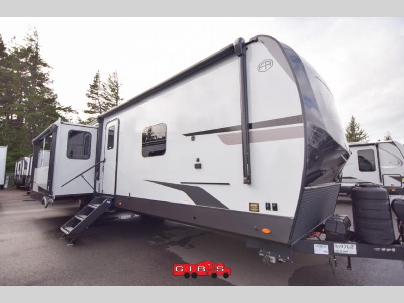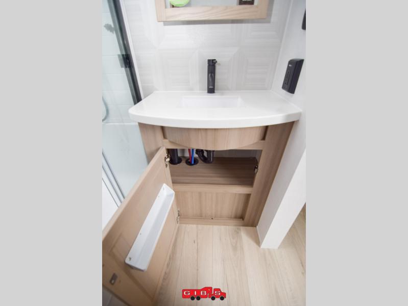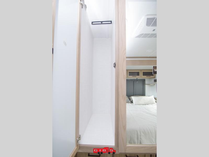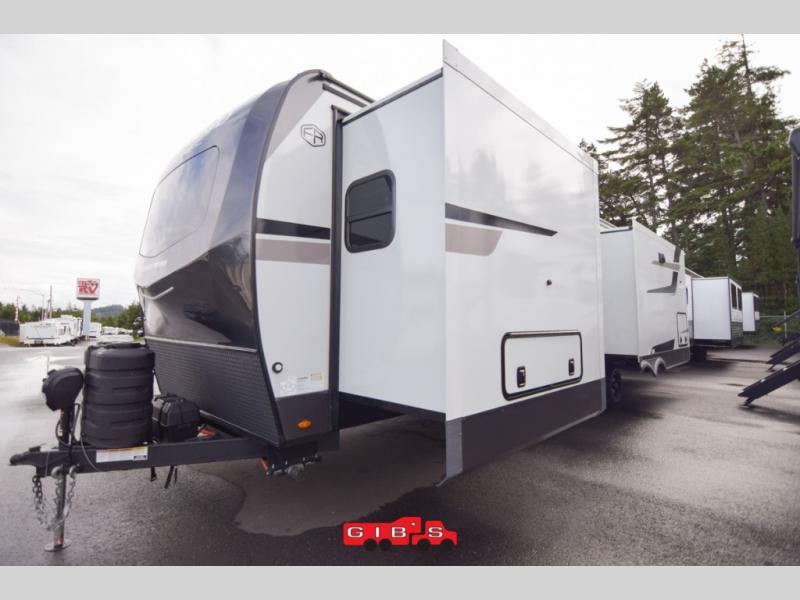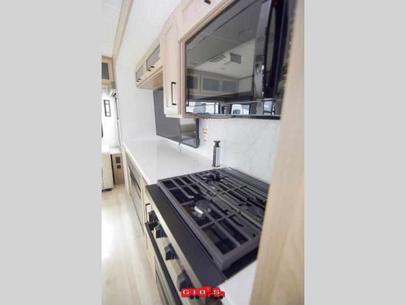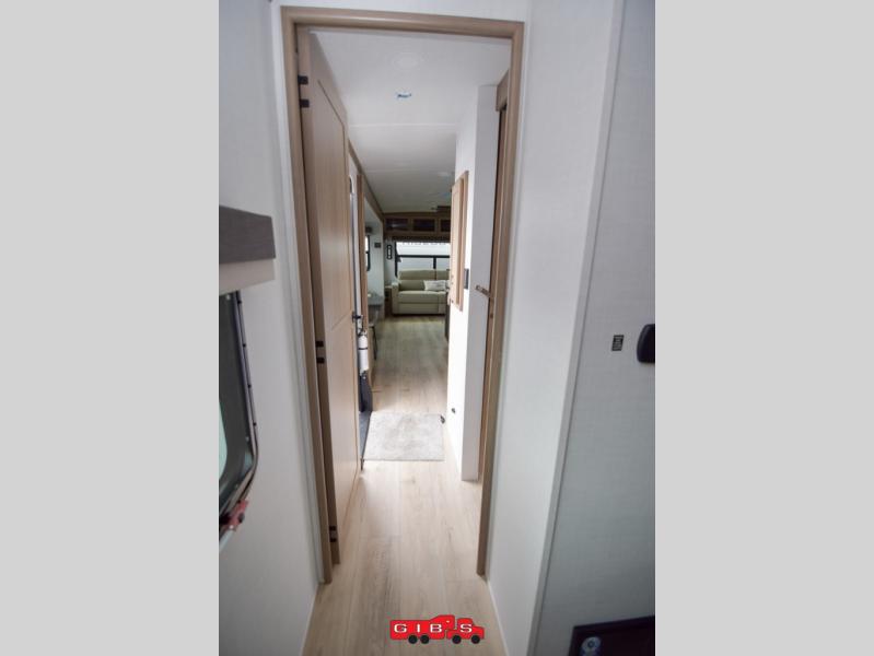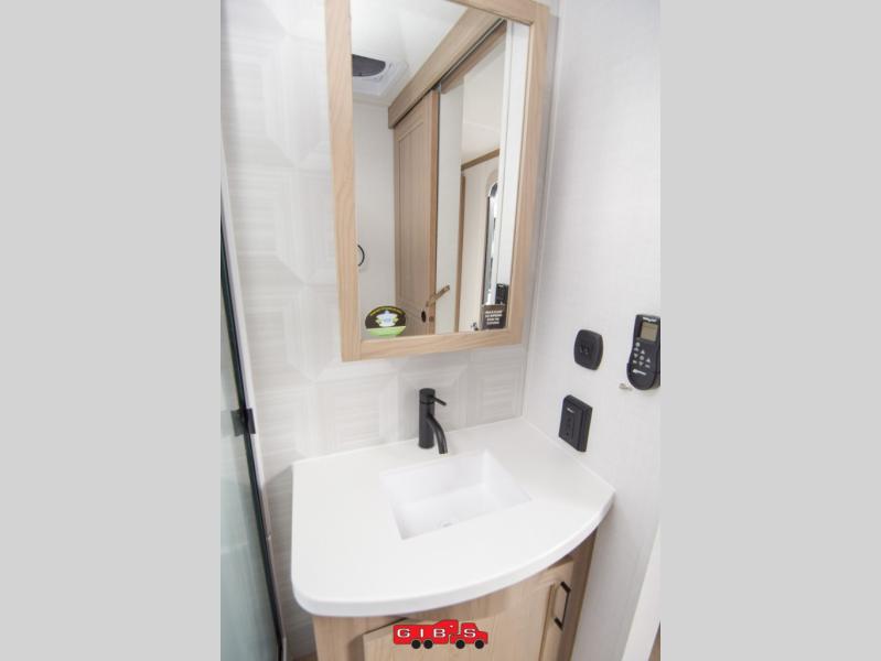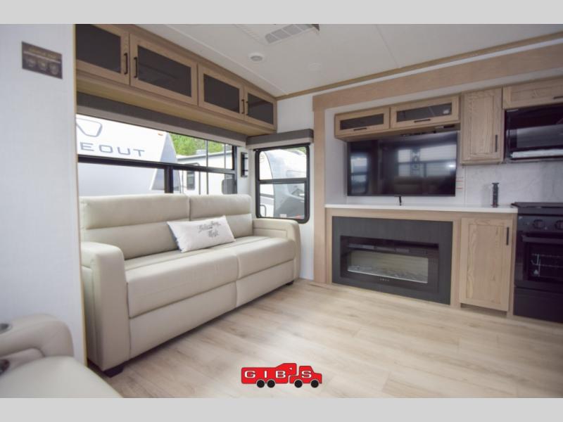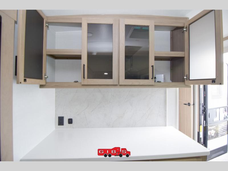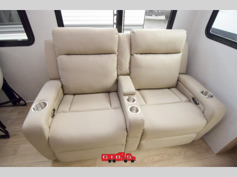 You're going to love the amount of natural light in this model with large windows in the back and the door side. The chef of the group will love the kitchen island, and there is tons of storage space for dishes, food, and knickknacks. The entertainment center with a Smart TV will allow you to watch movies at night, or you may just find yourselves outside under the two power awnings with LED lights. There is also an outside griddle prep here to cook pancakes in the morning. The king bed is sure to bring comfort, and you'll appreciate the large wardrobe to keep your clothes tidy. There is even washer and dryer prep if you choose to go full-time!
