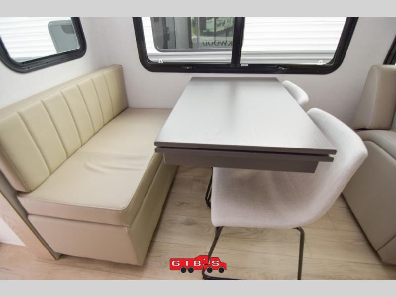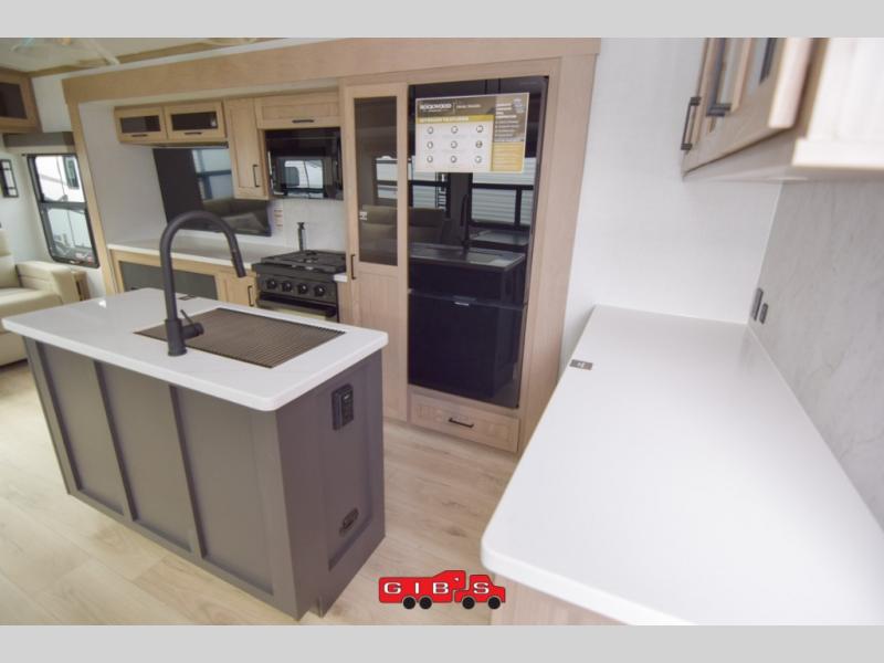 With any Rockwood Signature fifth wheel or travel trailer by Forest River RV, you will enjoy superior construction that includes a fully laminated walkable roof, 6-sided full-aluminum frame, and a painted fiberglass front cap with Clear Coat for added durability. Outside, you'll find a 200W solar panel for off-grid capabilities, slam baggage doors, and Key-Alike lock system for added convenience. Head inside to find soft close roller bearing drawers, roller shades, and residential style gas range. These travel trailer and fifth wheels also feature Goodyear Endurance tires with a tire pressure monitoring system plus Dexter Torflex torsion axles for smooth towing!