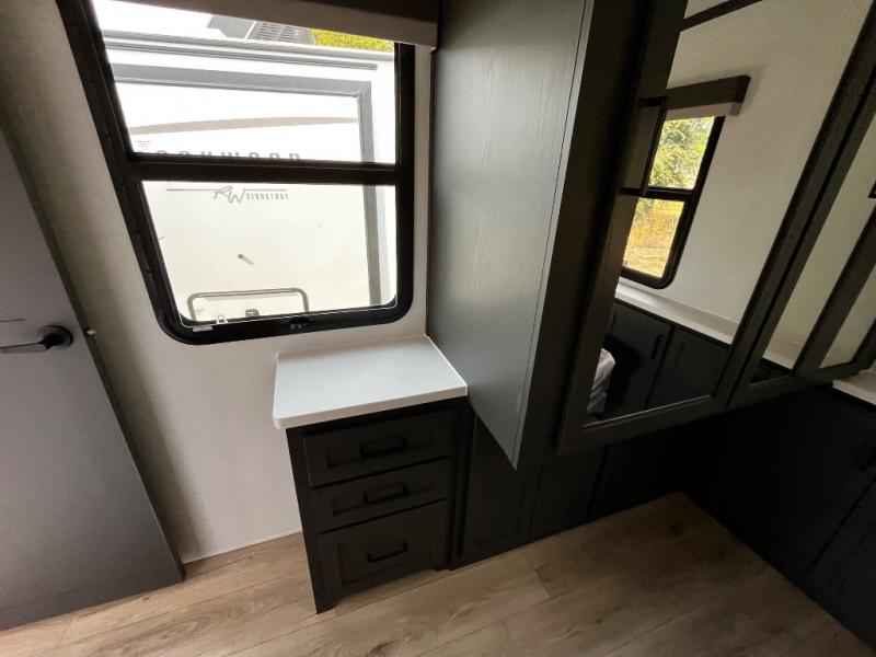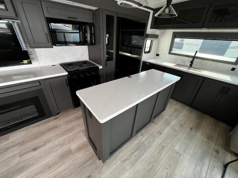With any Rockwood Signature fifth wheel or travel trailer by Forest River RV, you will enjoy superior construction that includes a fully laminated walkable roof, 6-sided full-aluminum frame, and a painted fiberglass front cap with Clear Coat for added durability. Outside, you'll find a 200W solar panel for off-grid capabilities, slam baggage doors, and Key-Alike lock system for added convenience. Head inside to find soft close roller bearing drawers, roller shades, and residential style gas range. These travel trailer and fifth wheels also feature Goodyear Endurance tires with a tire pressure monitoring system plus Dexter Torflex torsion axles for smooth towing!
