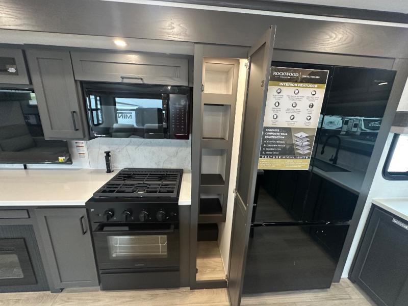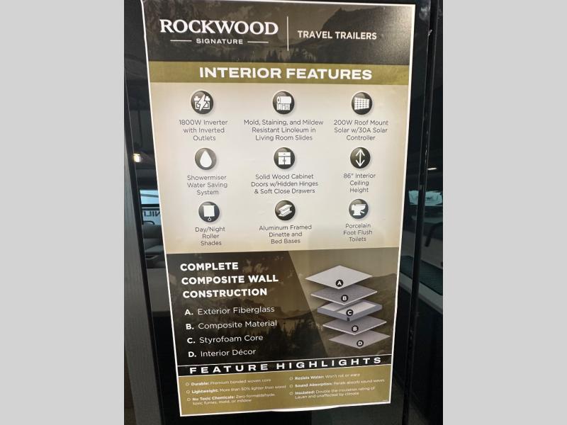 With any Rockwood Signature fifth wheel or travel trailer by Forest River RV, you will enjoy superior construction that includes a fully laminated walkable roof, 6-sided full-aluminum frame, and a painted fiberglass front cap with Clear Coat for added durability. Outside, you'll find a 200W solar panel for off-grid capabilities, slam baggage doors, and Key-Alike lock system for added convenience. Head inside to find soft close roller bearing drawers, roller shades, and residential style gas range. These travel trailer and fifth wheels also feature Goodyear Endurance tires with a tire pressure monitoring system plus Dexter Torflex torsion axles for smooth towing!