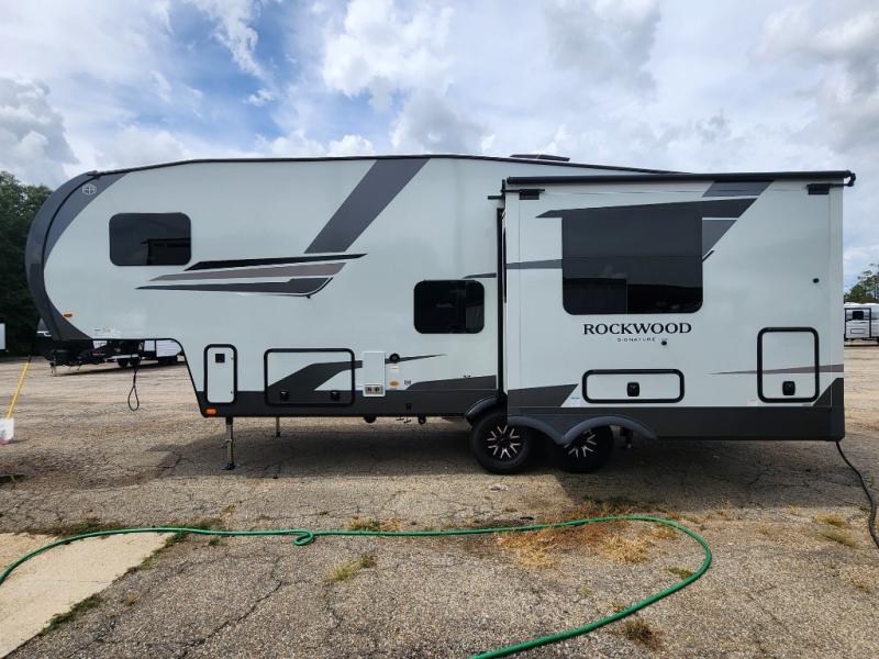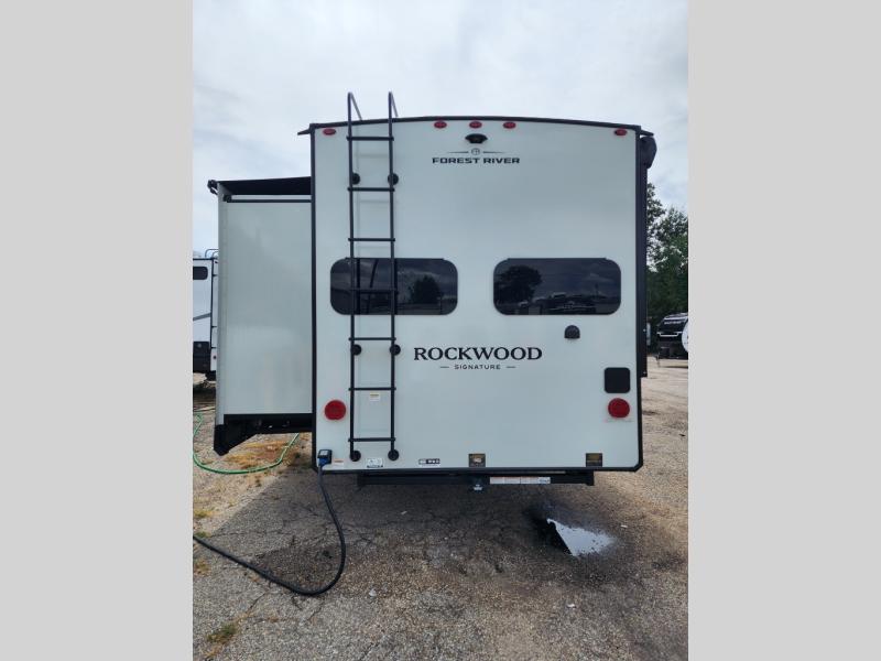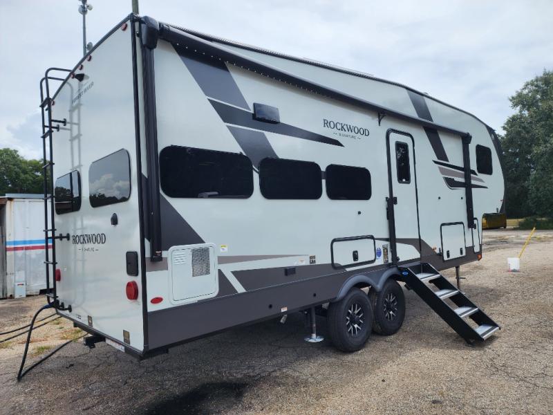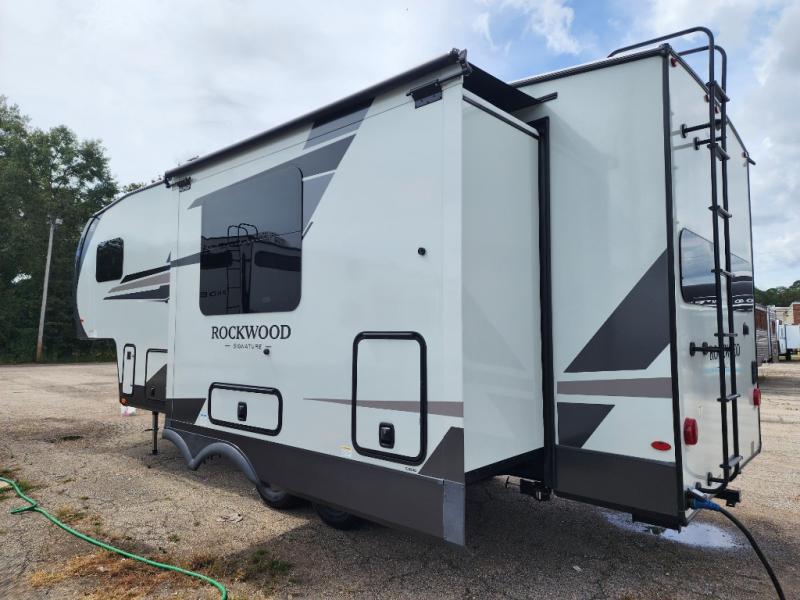 With any Rockwood Signature fifth wheel or travel trailer by Forest River RV, you will enjoy superior construction that includes a fully laminated walkable roof, 6-sided full-aluminum frame, and a painted fiberglass front cap with Clear Coat for added durability. Outside, you'll find a 200W solar panel for off-grid capabilities, slam baggage doors, and Key-Alike lock system for added convenience. Head inside to find soft close roller bearing drawers, roller shades, and residential style gas range. These travel trailer and fifth wheels also feature Goodyear Endurance tires with a tire pressure monitoring system plus Dexter Torflex torsion axles for smooth towing!