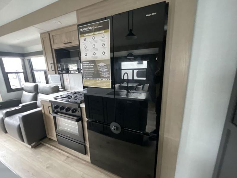 With any Rockwood Signature fifth wheel or travel trailer by Forest River RV, you will enjoy superior construction that includes a fully laminated walkable roof, 6-sided full-aluminum frame, and a painted fiberglass front cap with Clear Coat for added durability. Outside, you'll find a 200W solar panel for off-grid capabilities, slam baggage doors, and Key-Alike lock system for added convenience. Head inside to find soft close roller bearing drawers, roller shades, and residential style gas range. These travel trailer and fifth wheels also feature Goodyear Endurance tires with a tire pressure monitoring system plus Dexter Torflex torsion axles for smooth towing!