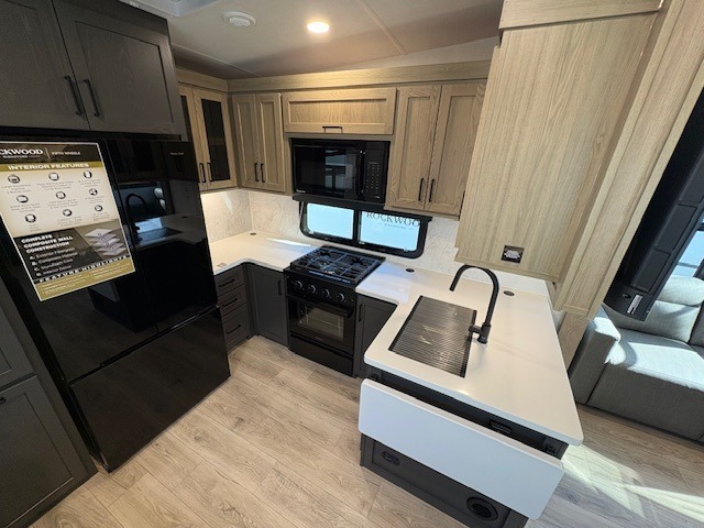 With any Rockwood Signature fifth wheel or travel trailer by Forest River RV, you will enjoy superior construction that includes a fully laminated walkable roof, 6-sided full-aluminum frame, and a painted fiberglass front cap with Clear Coat for added durability. Outside, you'll find a 200W solar panel for off-grid capabilities, slam baggage doors, and Key-Alike lock system for added convenience. Head inside to find soft close roller bearing drawers, roller shades, and residential style gas range. These travel trailer and fifth wheels also feature Goodyear Endurance tires with a tire pressure monitoring system plus Dexter Torflex torsion axles for smooth towing!