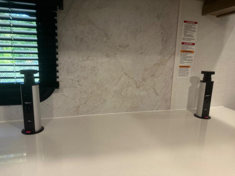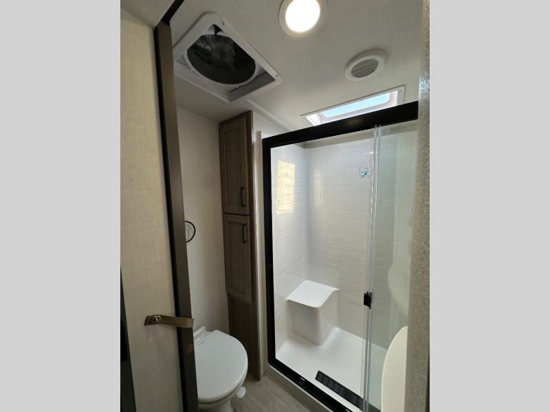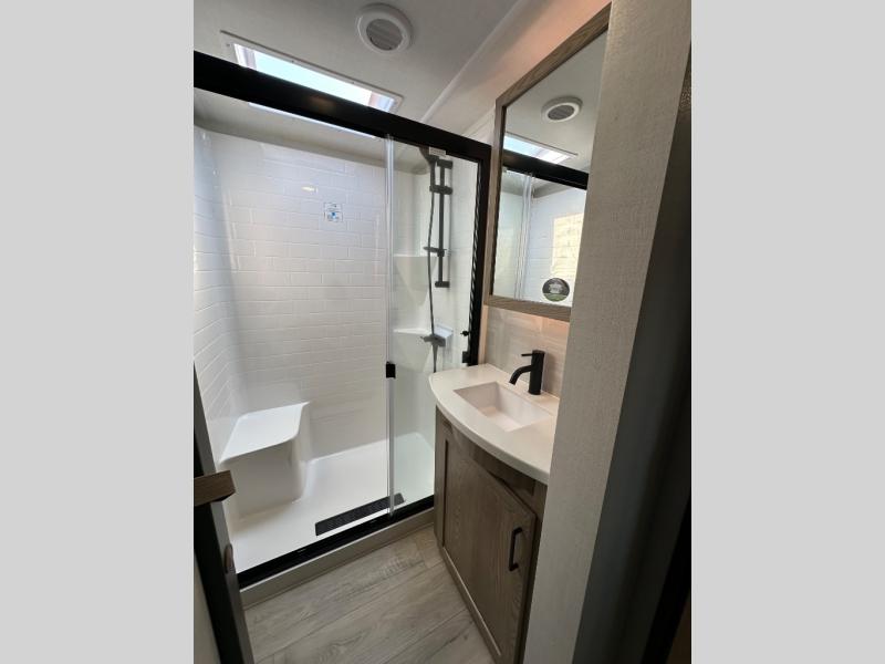 With any Rockwood Signature fifth wheel or travel trailer by Forest River RV, you will enjoy superior construction that includes laminated white fiberglass sidewalls, a radius roof with vaulted interior ceilings, plus radiant foil insulation and an enclosed underbelly for use in all types of weather. Some convenient exterior features include Keyed Alike locks, a rear ladder, a 200W solar panel, and a tire pressure monitor system with a monitor for added safety. The interior offers a One Touch OneControl panel with WeRV app control, for lights, awning, slides, water heater and more, and the Air 360+ omnidirectional antenna with WiFi prep lets you work while away from home if needed. You will also appreciate the interior vaulted ceilings, residential soft close doors and drawers, solid surface kitchen countertops, and designer kitchen backsplash!