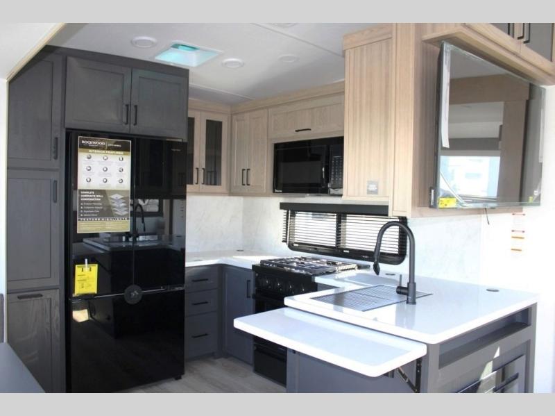 With any Rockwood Signature fifth wheel or travel trailer by Forest River RV, you will enjoy superior construction that includes a fully laminated walkable roof, 6-sided full-aluminum frame, and a painted fiberglass front cap with Clear Coat for added durability. Outside, you'll find a 200W solar panel for off-grid capabilities, slam baggage doors, and Key-Alike lock system for added convenience. Head inside to find soft close roller bearing drawers, roller shades, and residential style gas range. These travel trailer and fifth wheels also feature Goodyear Endurance tires with a tire pressure monitoring system plus Dexter Torflex torsion axles for smooth towing!
