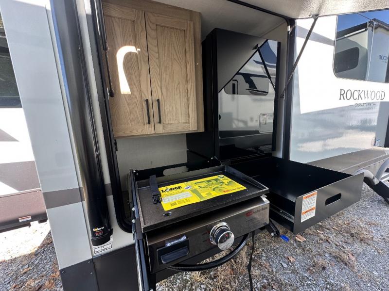 With any Rockwood Signature fifth wheel or travel trailer by Forest River RV, you will enjoy superior construction that includes a fully laminated walkable roof, 6-sided full-aluminum frame, and a painted fiberglass front cap with Clear Coat for added durability. Outside, you'll find a 200W solar panel for off-grid capabilities, slam baggage doors, and Key-Alike lock system for added convenience. Head inside to find soft close roller bearing drawers, roller shades, and residential style gas range. These travel trailer and fifth wheels also feature Goodyear Endurance tires with a tire pressure monitoring system plus Dexter Torflex torsion axles for smooth towing!
