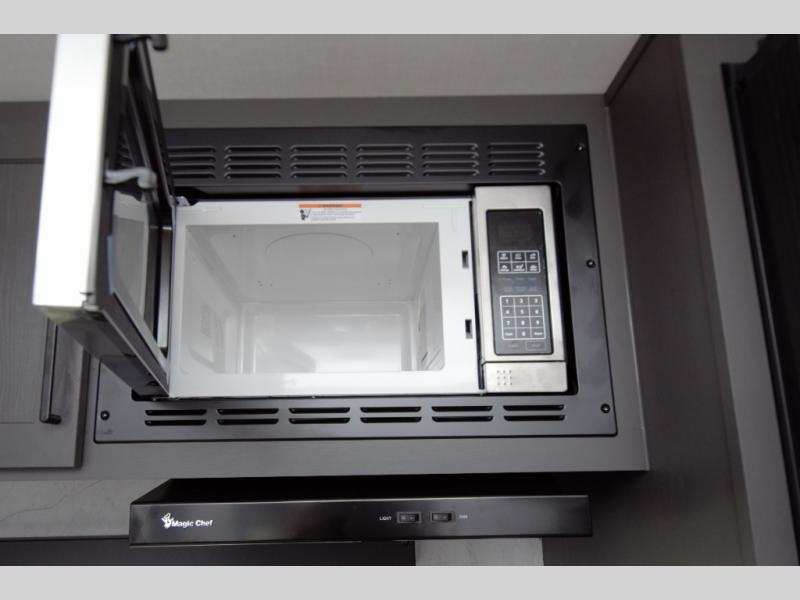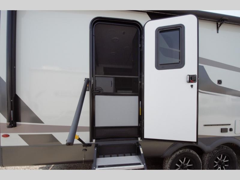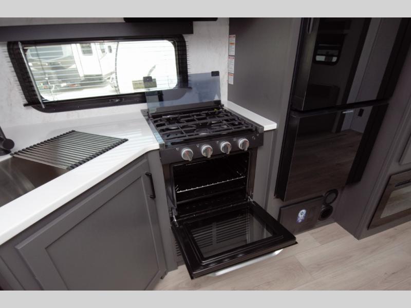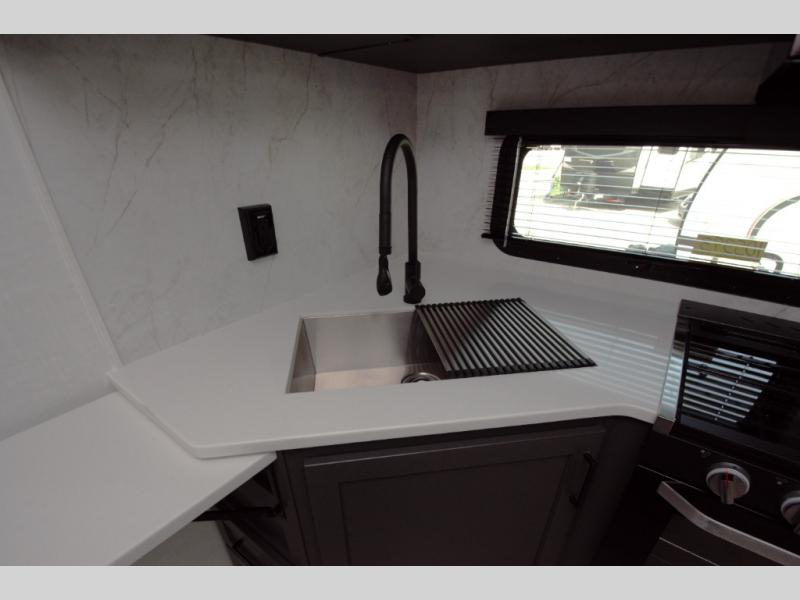 The living area feels open and bright with the slide-out theater seating and booth dinette, while the kitchen offers a walk in pantry and efficient layout. Outside, relax under the 21 foot awning or cook up something delicious on the outdoor griddle.