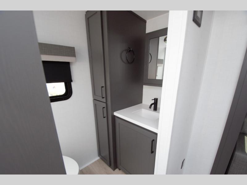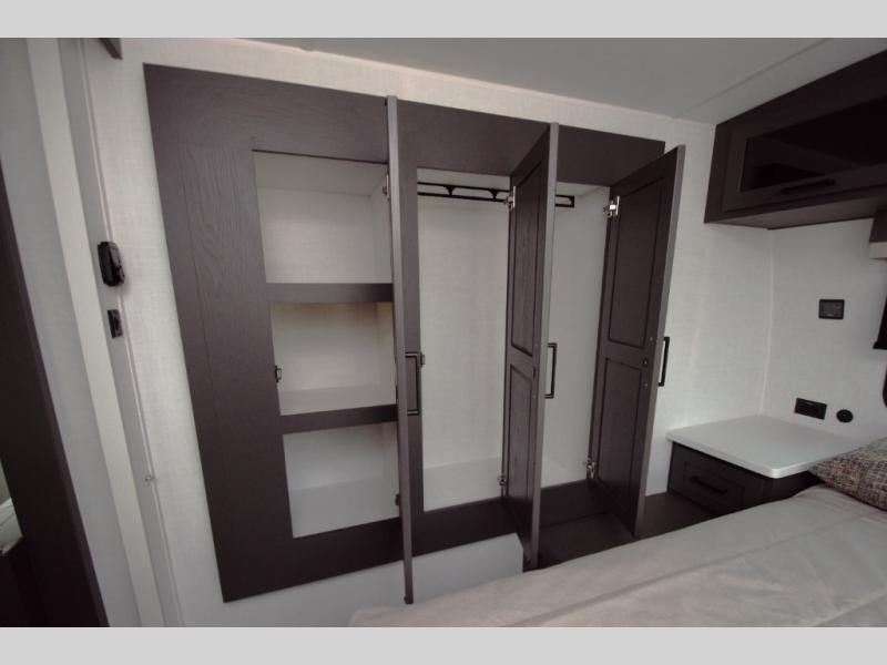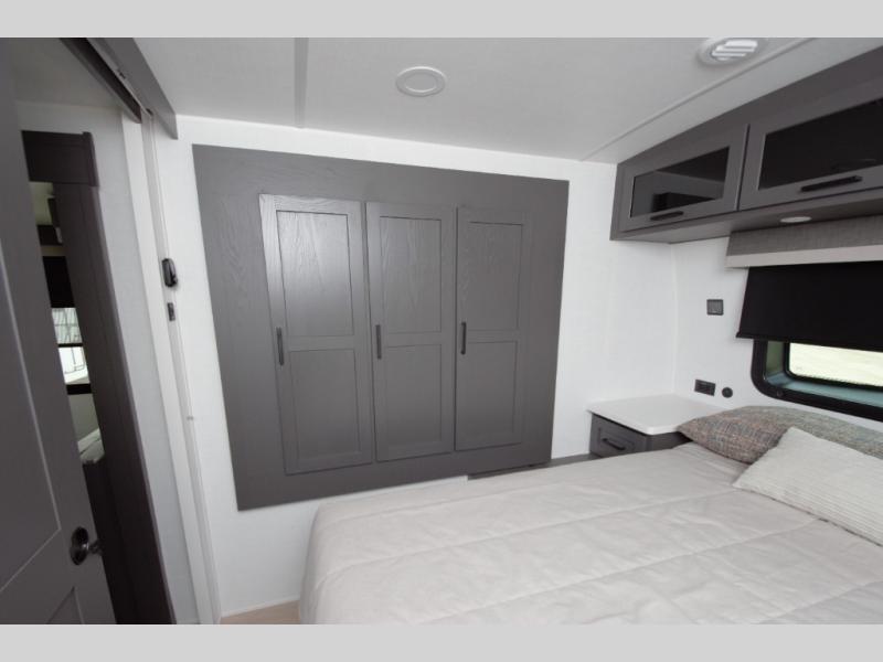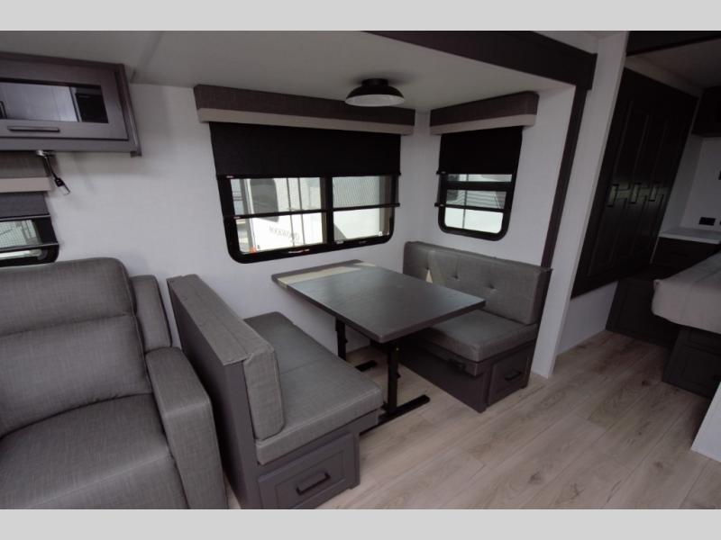 The 2026 Rockwood Ultra Lite 2606WS is the perfect blend of comfort and functionality in a travel trailer under 30 feet. The private front bedroom includes a 60 by 80 inch queen bed, nightstands on both sides, and a roomy wardrobe slide. In the rear, enjoy a full bathroom with a 36 inch sliding door for easy access.