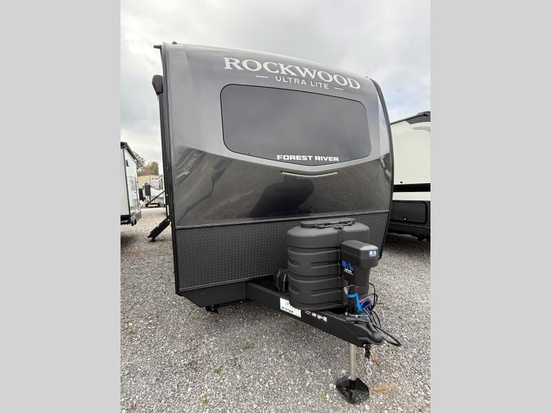 Each Rockwood Ultra Lite travel trailer by Forest River includes superior construction with a high gloss front cap, laminated white fiberglass sidewalls, and tinted frameless windows for a sleek look. The torsion axle, Rubber-Ryde suspension will make towing smooth and hassle-free, along with the nitrogen filled, Goodyear Endurance tires and the tire pressure monitor system. Interior comforts include designer kitchen backsplash, solid wood cabinet doors with hidden hinges, and night roller shades to name a few. Choose a Rockwood Ultra Lite travel trailer today!