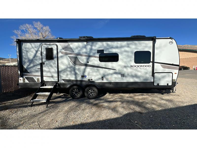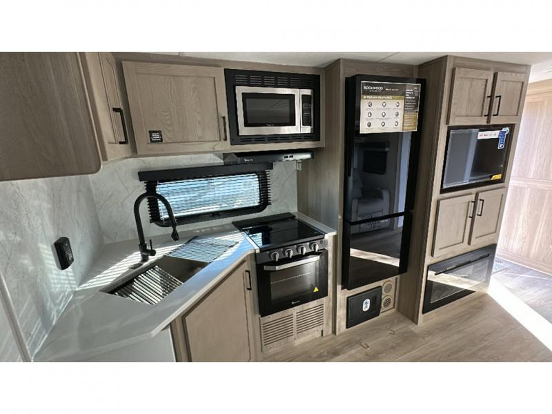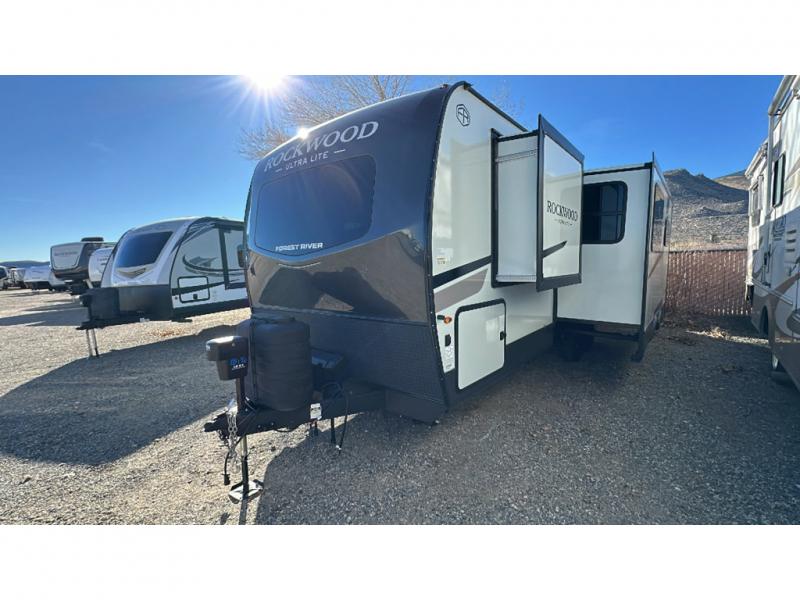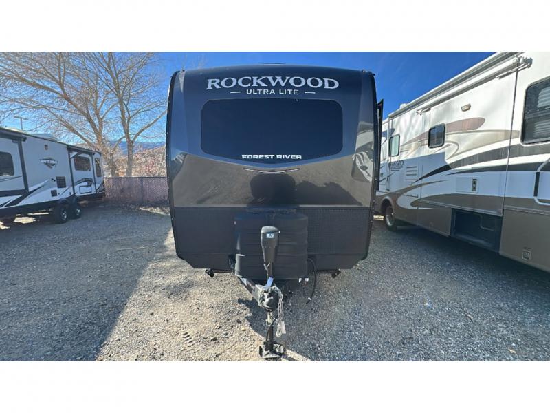 Each Rockwood Ultra Lite travel trailer by Forest River includes superior construction with a high gloss fiberglass cap, aluminum cage construction, and a power awning with LED lighting for a cozy and functional outdoor space. The torsion axle, power tongue jack will make towing smooth and hassle-free, along with the nitrogen filled, Goodyear Endurance tires and the tire pressure monitor system. Interior comforts include kitchen sink with high rise faucet, hidden hinge cabinet doors, and roller shades to name a few. Choose a Rockwood Ultra Lite travel trailer today!