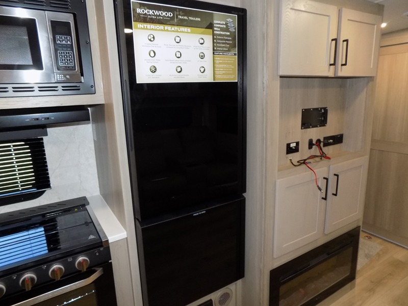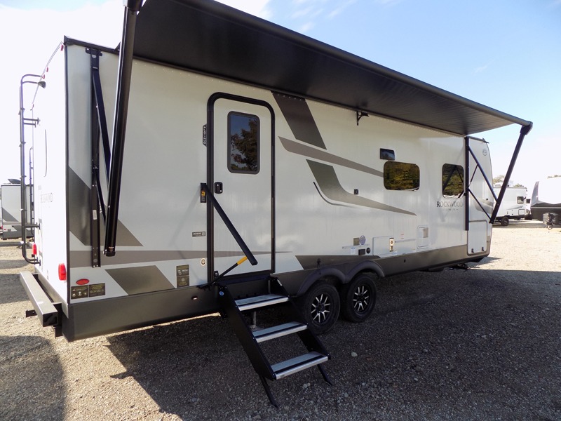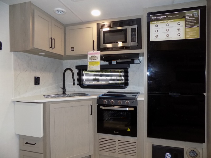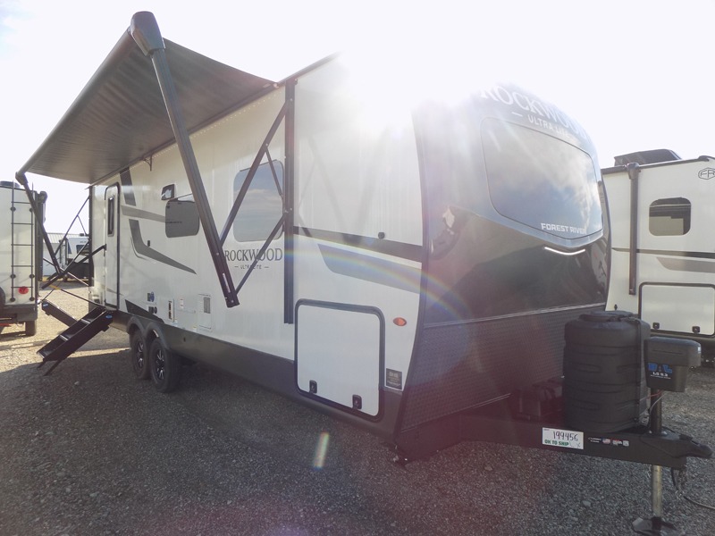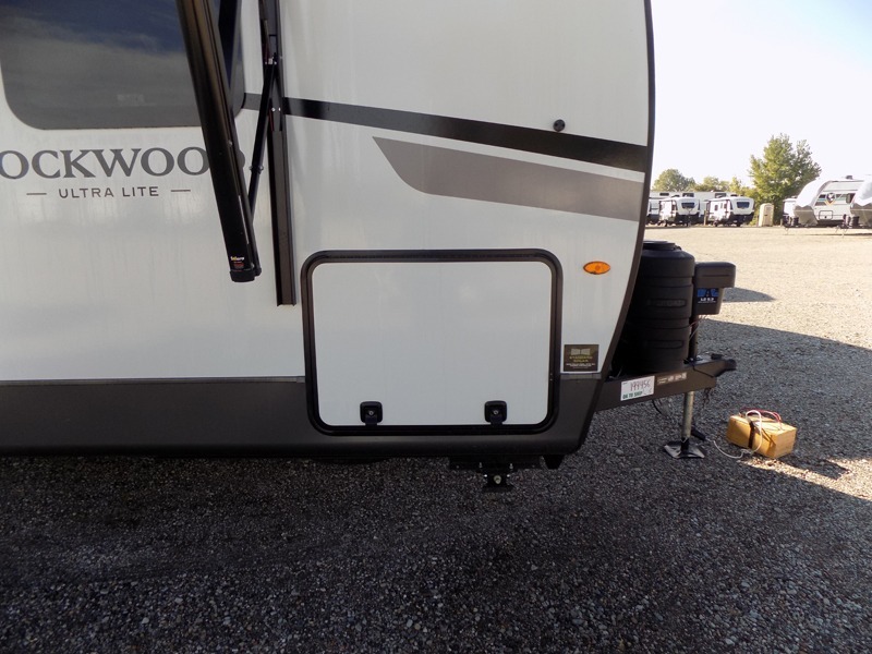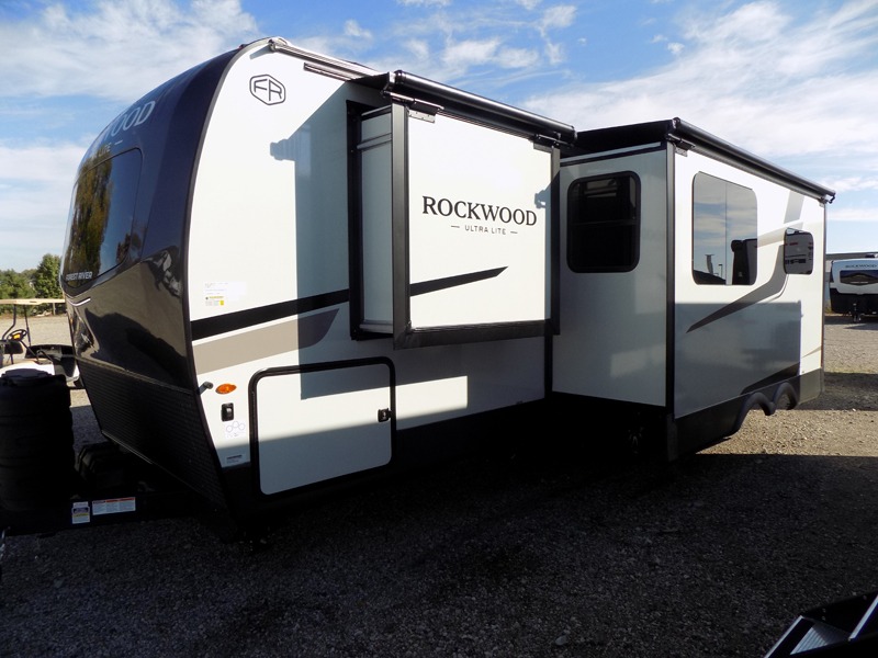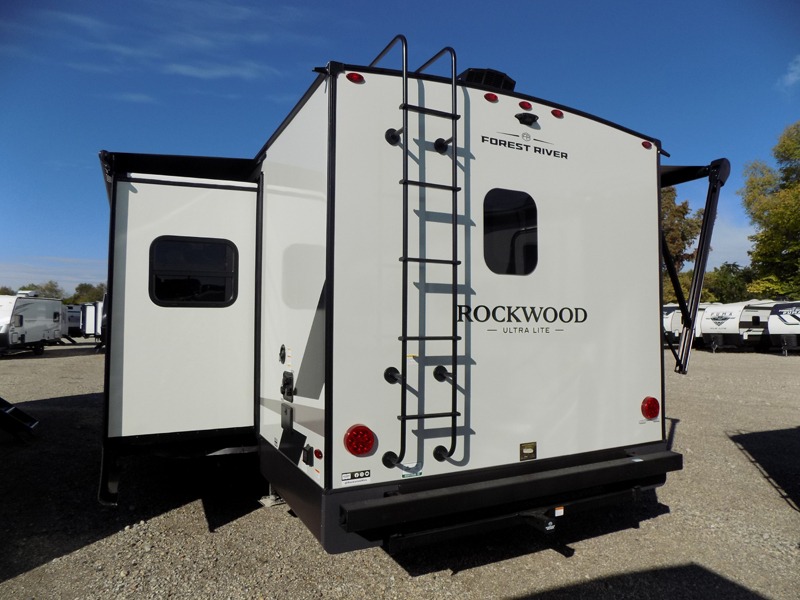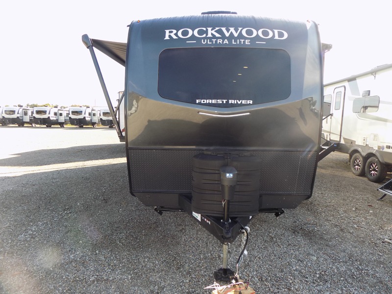 Each Rockwood Ultra Lite travel trailer by Forest River includes superior construction with a high gloss fiberglass cap, aluminum cage construction, and a power awning with LED lighting for a cozy and functional outdoor space. The torsion axle, power tongue jack will make towing smooth and hassle-free, along with the nitrogen filled, Goodyear Endurance tires and the tire pressure monitor system. Interior comforts include kitchen sink with high rise faucet, hidden hinge cabinet doors, and roller shades to name a few. Choose a Rockwood Ultra Lite travel trailer today!