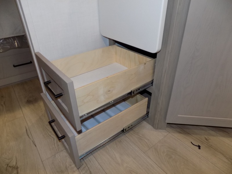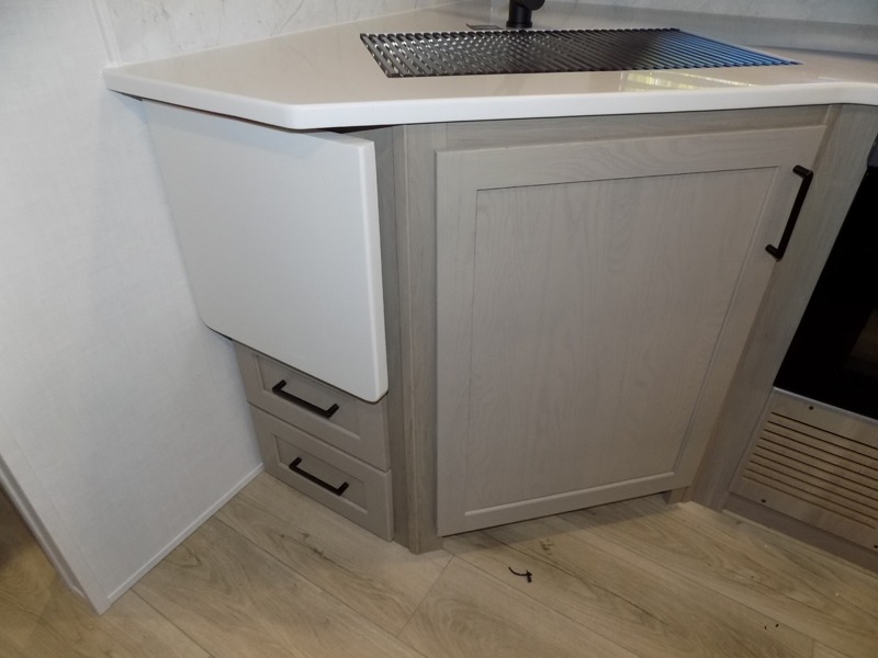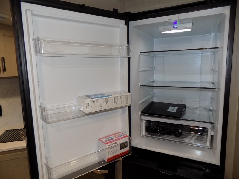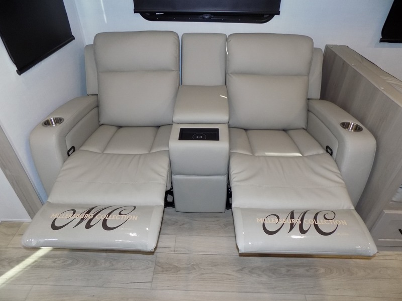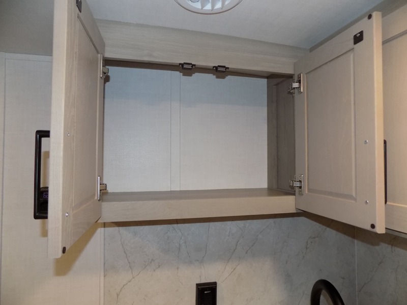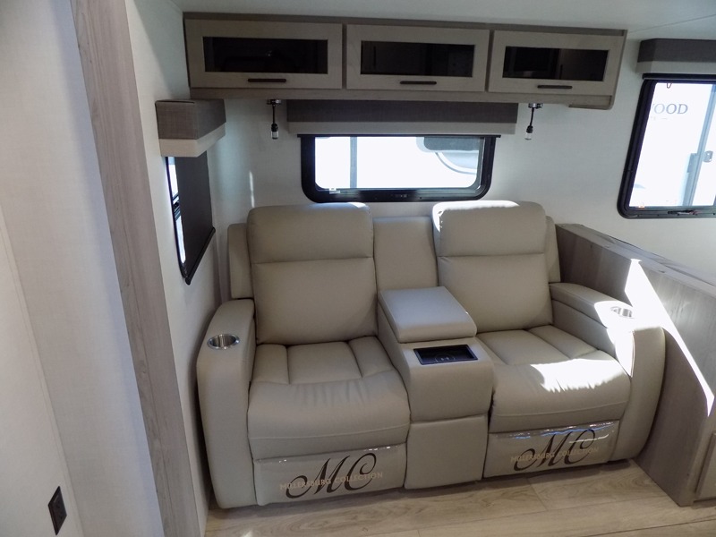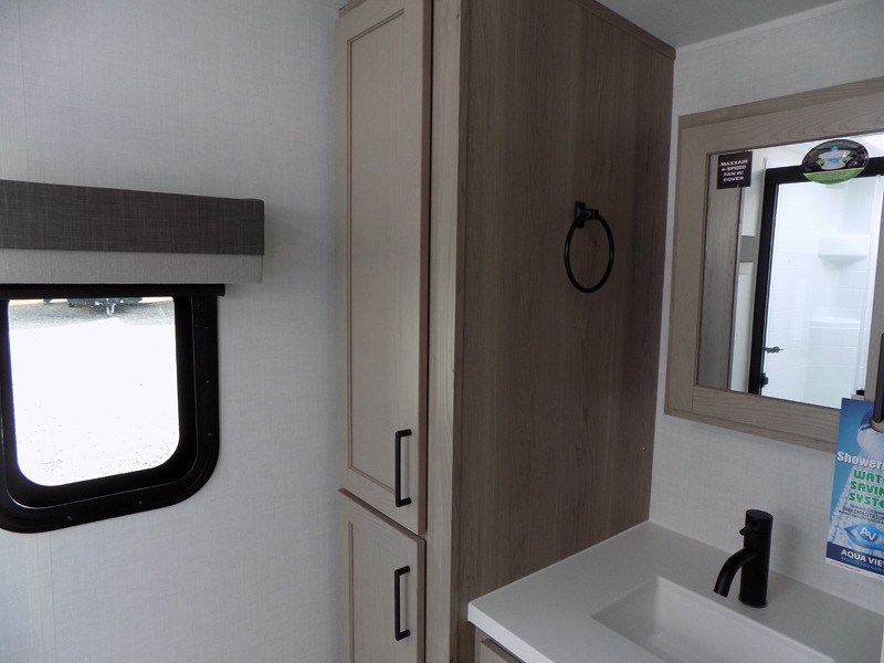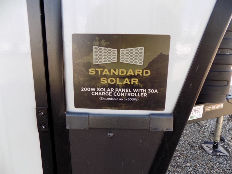 This trailer is the perfect couple's retreat with its private bedroom up front which includes a queen bed, a slide out wardrobe, and a TV option. The spacious rear full bathroom provides a shower and linen storage, and a space savings sliding door. The cook will have full amenities with ample counter space, a walk-in pantry for food storage, and a three burner range to cook meals on. If the weather is nice outside, you can turn on the outside speakers to enjoy music, and there is a 21' awning to relax under. Or you can stay inside to enjoy the fireplace and Smart TV! You will also appreciate the pass thru storage with an optional steel sliding tray to easily access gear!