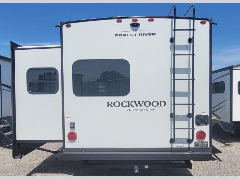 Each Rockwood Ultra Lite travel trailer by Forest River includes superior construction with a high gloss front cap, laminated white fiberglass sidewalls, and tinted frameless windows for a sleek look. The torsion axle, Rubber-Ryde suspension will make towing smooth and hassle-free, along with the nitrogen filled, Goodyear Endurance tires and the tire pressure monitor system. Interior comforts include designer kitchen backsplash, solid wood cabinet doors with hidden hinges, and night roller shades to name a few. Choose a Rockwood Ultra Lite travel trailer today!