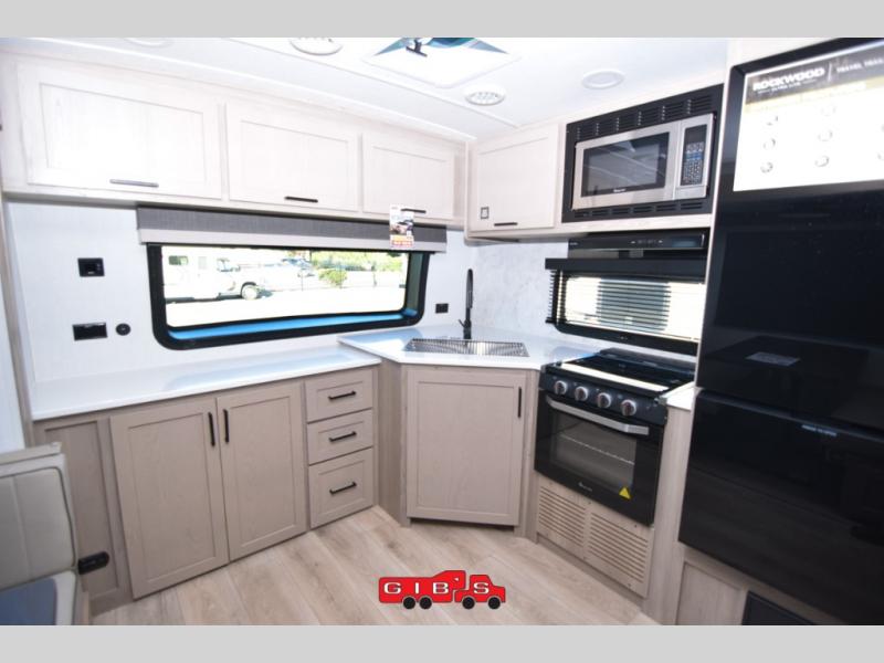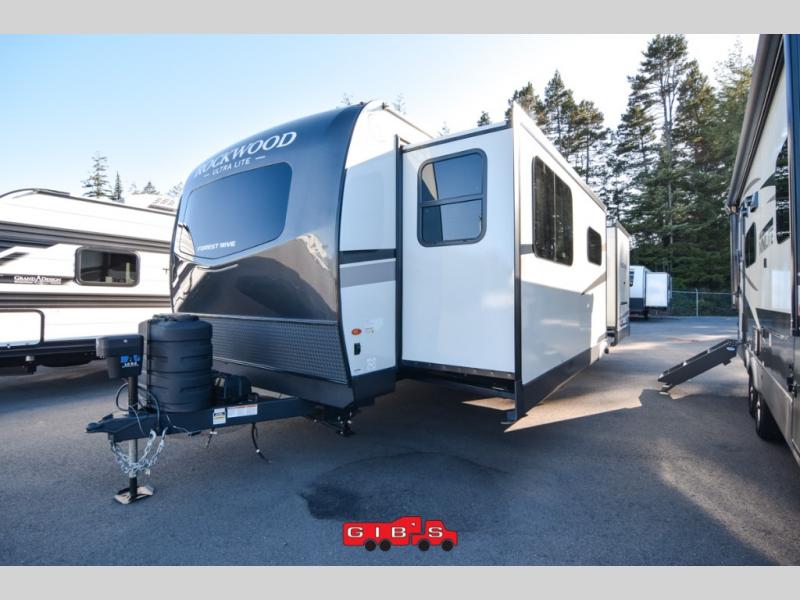 Each Rockwood Ultra Lite travel trailer by Forest River includes superior construction with a high gloss front cap, laminated white fiberglass sidewalls, and tinted frameless windows for a sleek look. The torsion axle, Rubber-Ryde suspension will make towing smooth and hassle-free, along with the nitrogen filled, Goodyear Endurance tires and the tire pressure monitor system. Interior comforts include designer kitchen backsplash, solid wood cabinet doors with hidden hinges, and night roller shades to name a few. Choose a Rockwood Ultra Lite travel trailer today!