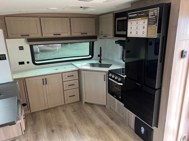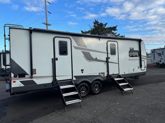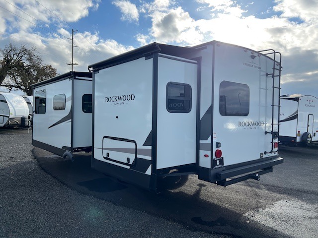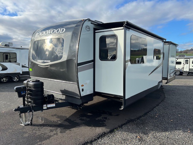 Each Rockwood Ultra Lite travel trailer by Forest River includes superior construction with a high gloss fiberglass cap, aluminum cage construction, and a power awning with LED lighting for a cozy and functional outdoor space. The torsion axle, power tongue jack will make towing smooth and hassle-free, along with the nitrogen filled, Goodyear Endurance tires and the tire pressure monitor system. Interior comforts include kitchen sink with high rise faucet, hidden hinge cabinet doors, and roller shades to name a few. Choose a Rockwood Ultra Lite travel trailer today!