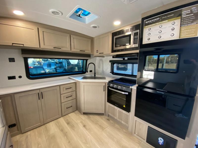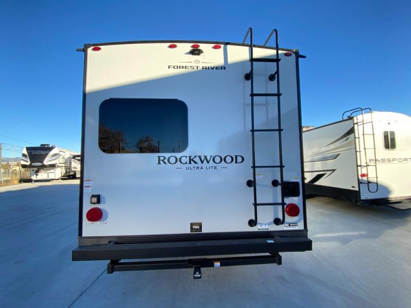 Each Rockwood Ultra Lite travel trailer by Forest River includes superior construction with a high gloss fiberglass cap, aluminum cage construction, and a power awning with LED lighting for a cozy and functional outdoor space. The torsion axle, power tongue jack will make towing smooth and hassle-free, along with the nitrogen filled, Goodyear Endurance tires and the tire pressure monitor system. Interior comforts include kitchen sink with high rise faucet, hidden hinge cabinet doors, and roller shades to name a few. Choose a Rockwood Ultra Lite travel trailer today!