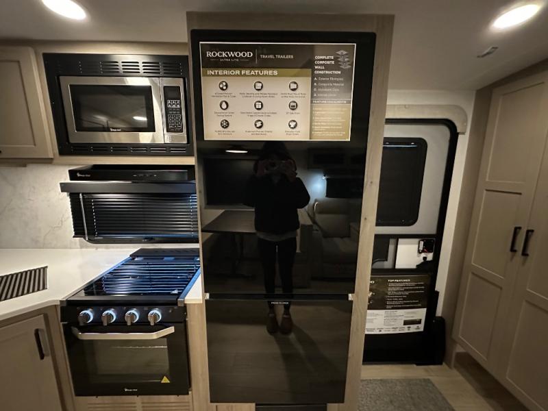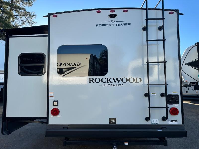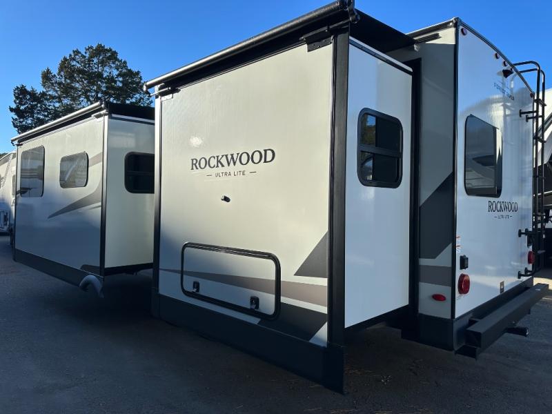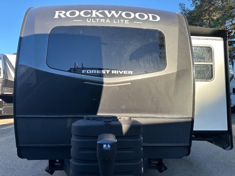 Each Rockwood Ultra Lite travel trailer by Forest River includes superior construction with a high gloss fiberglass cap, aluminum cage construction, and a power awning with LED lighting for a cozy and functional outdoor space. The torsion axle, power tongue jack will make towing smooth and hassle-free, along with the nitrogen filled, Goodyear Endurance tires and the tire pressure monitor system. Interior comforts include kitchen sink with high rise faucet, hidden hinge cabinet doors, and roller shades to name a few. Choose a Rockwood Ultra Lite travel trailer today!