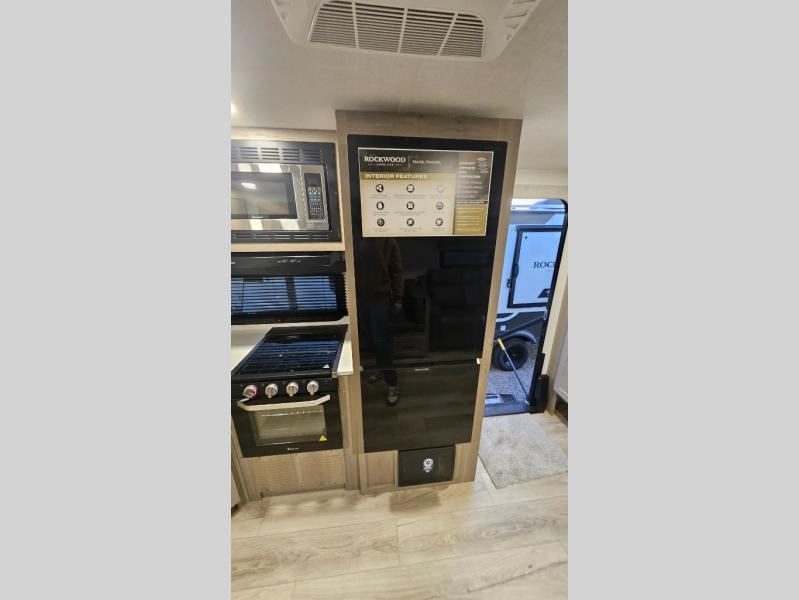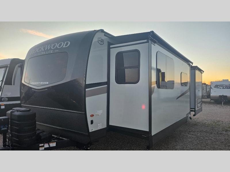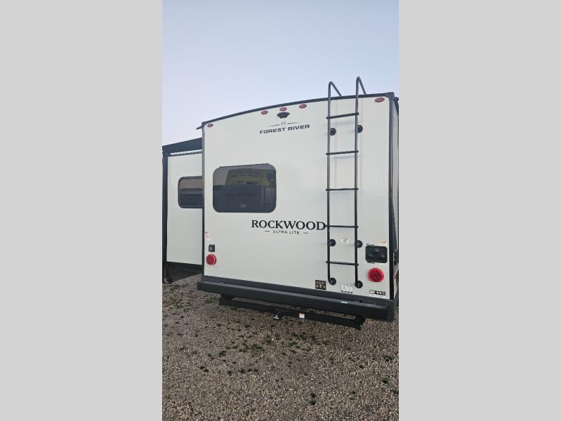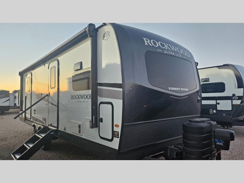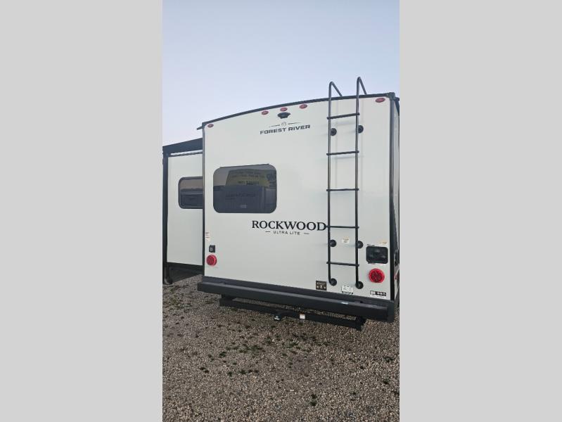 Each Rockwood Ultra Lite travel trailer by Forest River includes superior construction with a high gloss fiberglass cap, aluminum cage construction, and a power awning with LED lighting for a cozy and functional outdoor space. The torsion axle, power tongue jack will make towing smooth and hassle-free, along with the nitrogen filled, Goodyear Endurance tires and the tire pressure monitor system. Interior comforts include kitchen sink with high rise faucet, hidden hinge cabinet doors, and roller shades to name a few. Choose a Rockwood Ultra Lite travel trailer today!