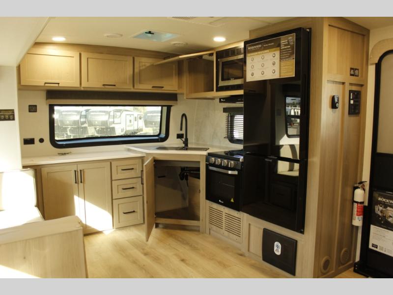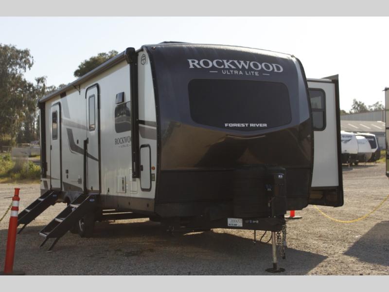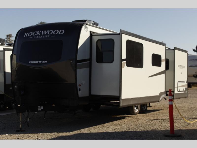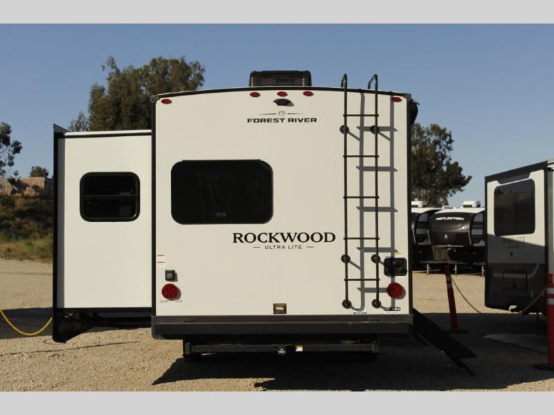 Each Rockwood Ultra Lite travel trailer by Forest River includes superior construction with a high gloss fiberglass cap, aluminum cage construction, and a power awning with LED lighting for a cozy and functional outdoor space. The torsion axle, power tongue jack will make towing smooth and hassle-free, along with the nitrogen filled, Goodyear Endurance tires and the tire pressure monitor system. Interior comforts include kitchen sink with high rise faucet, hidden hinge cabinet doors, and roller shades to name a few. Choose a Rockwood Ultra Lite travel trailer today!