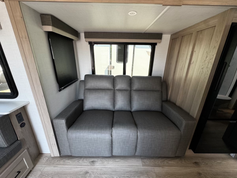 This double slide out travel trailer is perfect for weekend trips or extended stays! Your crew can play a game around the U-shaped dinette, relax on the theater seat across from the TV, or visit outdoors under the 21' awning. The fully-equipped kitchen allows you to make meals each day, and the walk-thru bath is easily accessible for everyone to use. This model also includes a front master bedroom with a queen bed, a wardrobe slide out, and one of the dual entry doors for convenience!