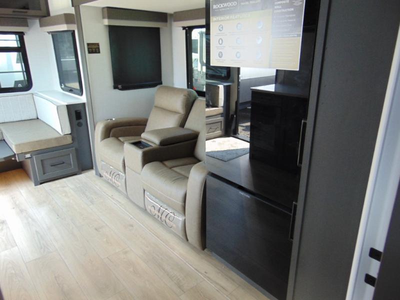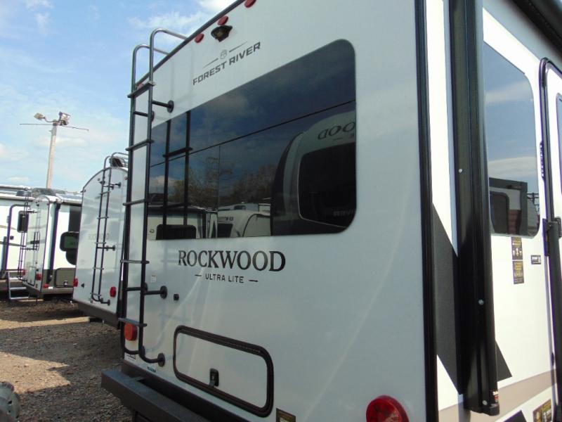 Each Rockwood Ultra Lite travel trailer by Forest River includes superior construction with a high gloss front cap, laminated white fiberglass sidewalls, and tinted frameless windows for a sleek look. The torsion axle, Rubber-Ryde suspension will make towing smooth and hassle-free, along with the nitrogen filled, Goodyear Endurance tires and the tire pressure monitor system. Interior comforts include designer kitchen backsplash, solid wood cabinet doors with hidden hinges, and night roller shades to name a few. Choose a Rockwood Ultra Lite travel trailer today!