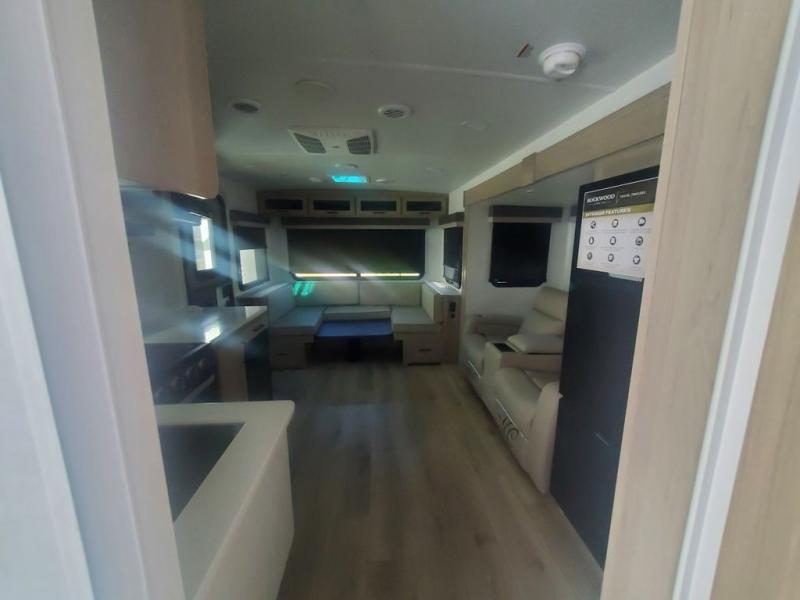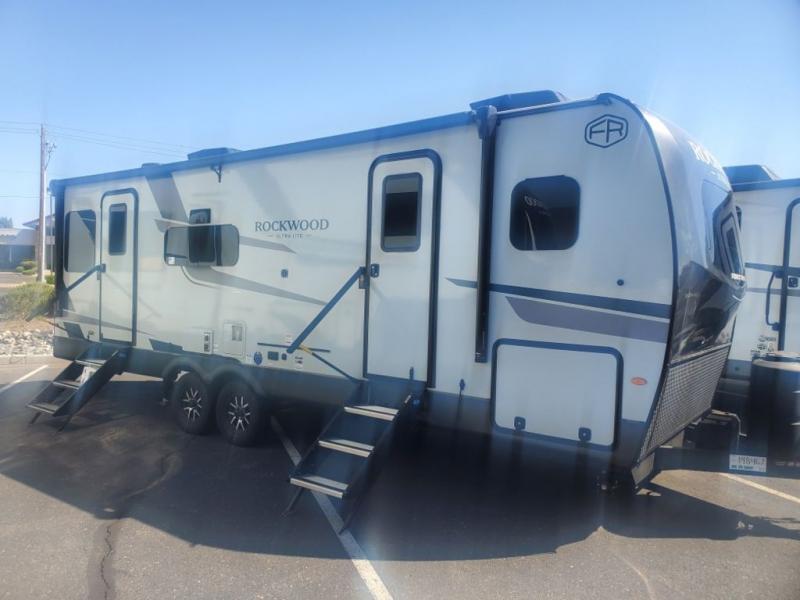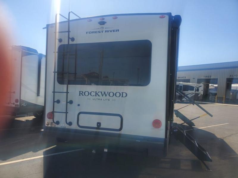 Each Rockwood Ultra Lite travel trailer by Forest River includes superior construction with a high gloss fiberglass cap, aluminum cage construction, and a power awning with LED lighting for a cozy and functional outdoor space. The torsion axle, power tongue jack will make towing smooth and hassle-free, along with the nitrogen filled, Goodyear Endurance tires and the tire pressure monitor system. Interior comforts include kitchen sink with high rise faucet, hidden hinge cabinet doors, and roller shades to name a few. Choose a Rockwood Ultra Lite travel trailer today!