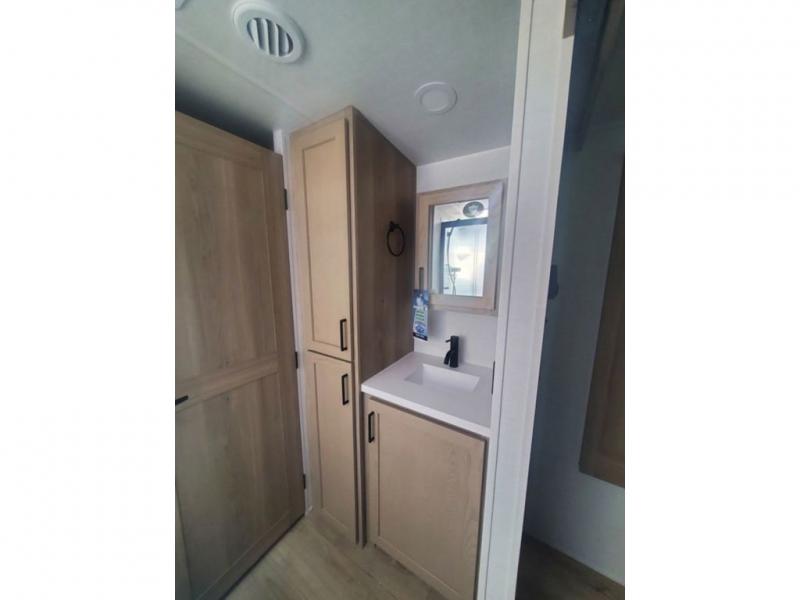 This double slide out travel trailer is perfect for weekend trips or extended stays! Your crew can play a game around the U-shaped dinette, relax on the theater seat across from the TV, or visit outdoors under the 21' awning. The fully-equipped kitchen allows you to make meals each day, and the walk-thru bath is easily accessible for everyone to use. This model also includes a front master bedroom with a queen bed, a wardrobe slide out, and one of the dual entry doors for convenience!