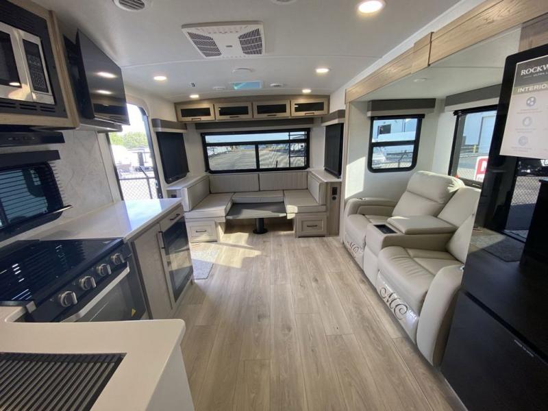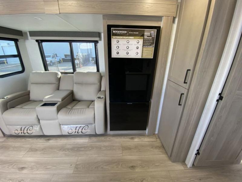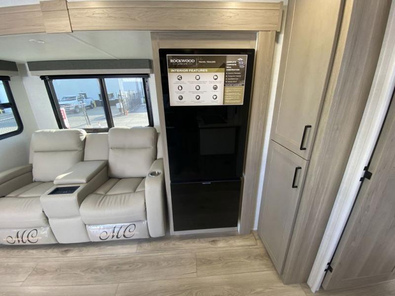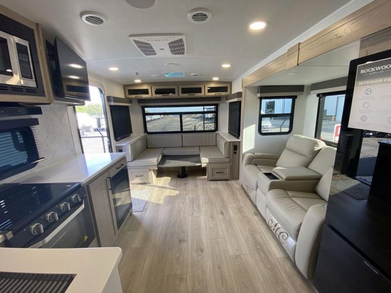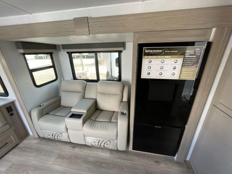 Each Rockwood Ultra Lite travel trailer by Forest River includes superior construction with a high gloss fiberglass cap, aluminum cage construction, and a power awning with LED lighting for a cozy and functional outdoor space. The torsion axle, power tongue jack will make towing smooth and hassle-free, along with the nitrogen filled, Goodyear Endurance tires and the tire pressure monitor system. Interior comforts include kitchen sink with high rise faucet, hidden hinge cabinet doors, and roller shades to name a few. Choose a Rockwood Ultra Lite travel trailer today!