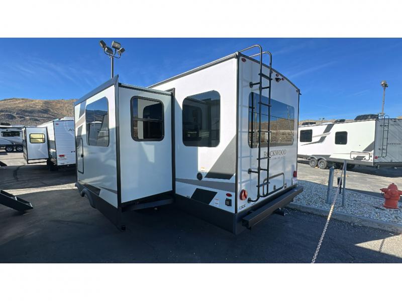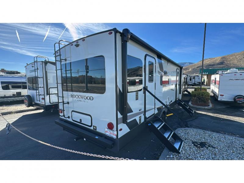 Each Rockwood Ultra Lite travel trailer by Forest River includes superior construction with a high gloss fiberglass cap, aluminum cage construction, and a power awning with LED lighting for a cozy and functional outdoor space. The torsion axle, power tongue jack will make towing smooth and hassle-free, along with the nitrogen filled, Goodyear Endurance tires and the tire pressure monitor system. Interior comforts include kitchen sink with high rise faucet, hidden hinge cabinet doors, and roller shades to name a few. Choose a Rockwood Ultra Lite travel trailer today!