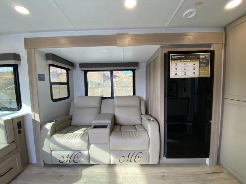 Each Rockwood Ultra Lite travel trailer by Forest River includes superior construction with a high gloss fiberglass cap, aluminum cage construction, and a power awning with LED lighting for a cozy and functional outdoor space. The torsion axle, power tongue jack will make towing smooth and hassle-free, along with the nitrogen filled, Goodyear Endurance tires and the tire pressure monitor system. Interior comforts include kitchen sink with high rise faucet, hidden hinge cabinet doors, and roller shades to name a few. Choose a Rockwood Ultra Lite travel trailer today!