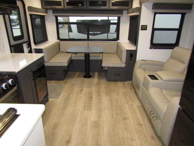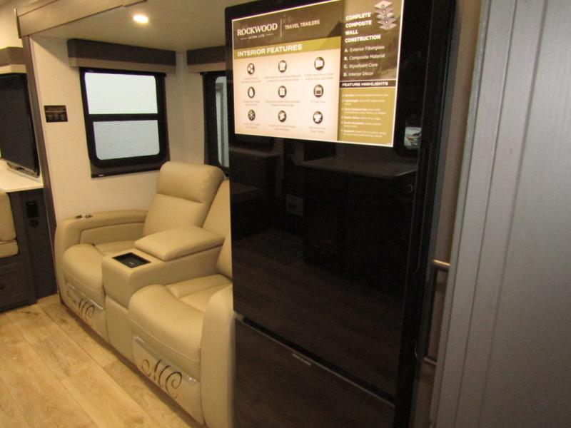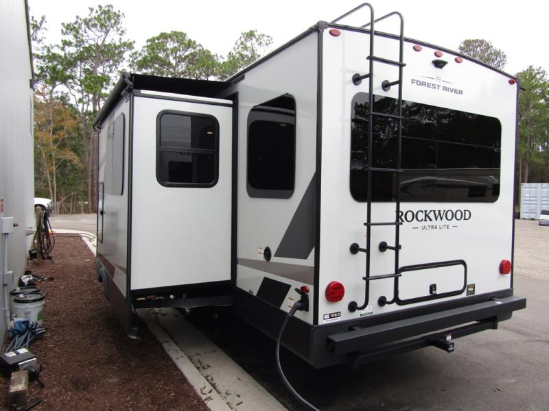 Each Rockwood Ultra Lite travel trailer by Forest River includes superior construction with a high gloss fiberglass cap, aluminum cage construction, and a power awning with LED lighting for a cozy and functional outdoor space. The torsion axle, power tongue jack will make towing smooth and hassle-free, along with the nitrogen filled, Goodyear Endurance tires and the tire pressure monitor system. Interior comforts include kitchen sink with high rise faucet, hidden hinge cabinet doors, and roller shades to name a few. Choose a Rockwood Ultra Lite travel trailer today!