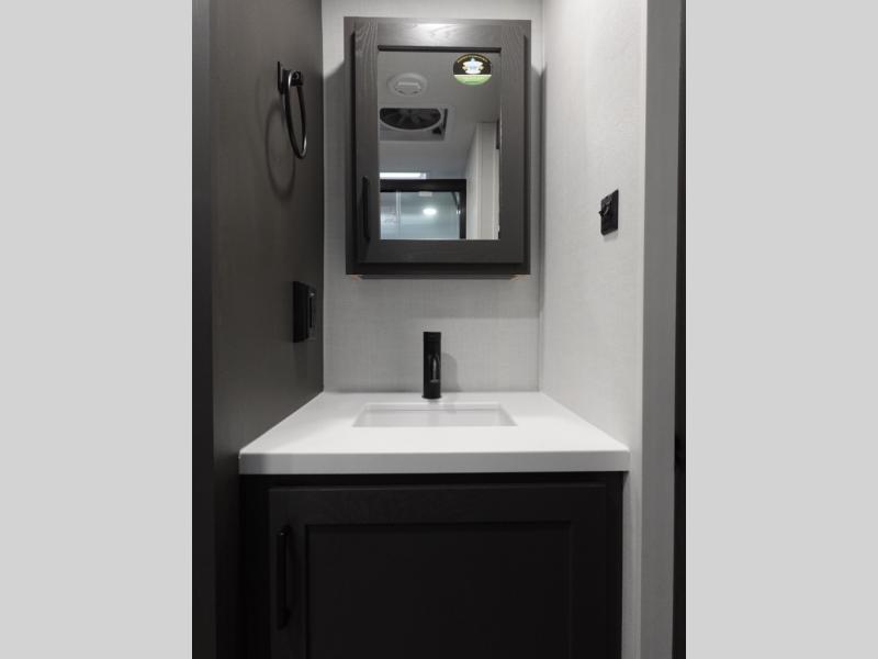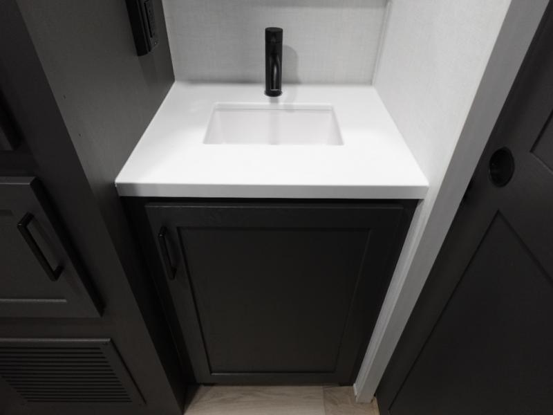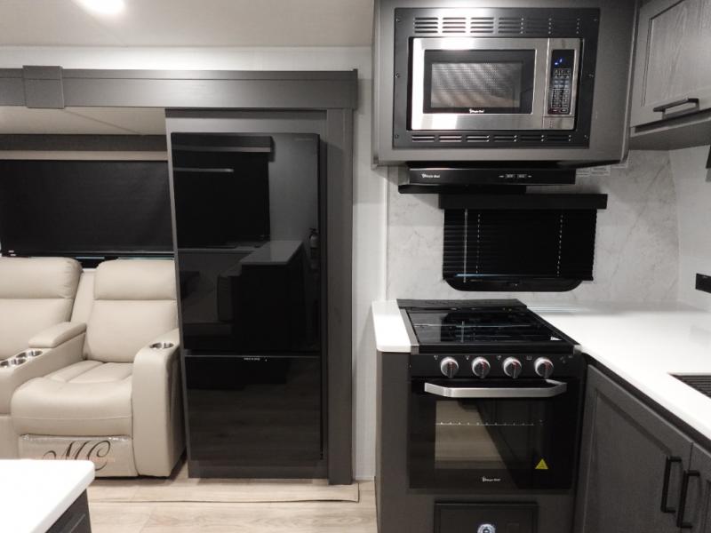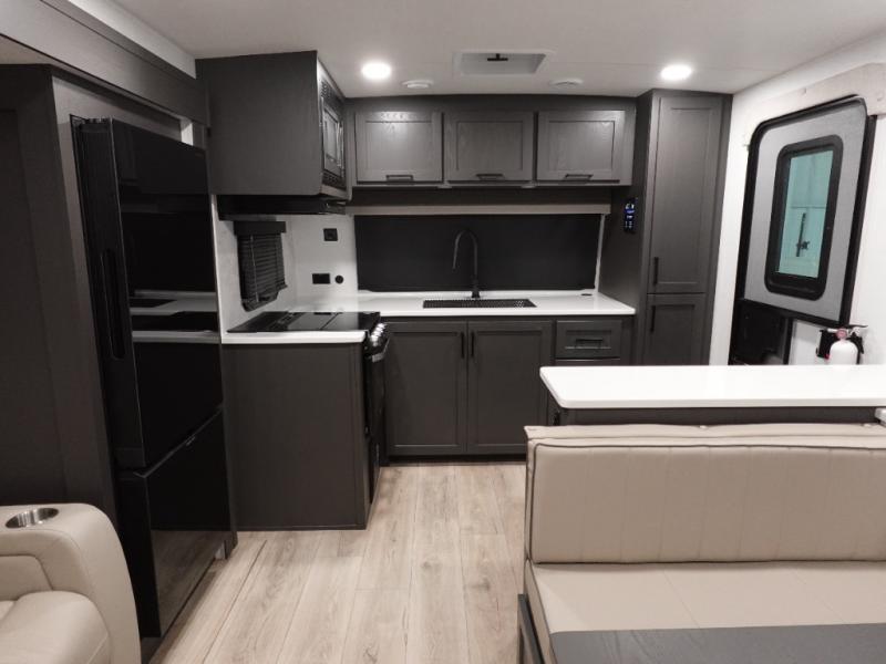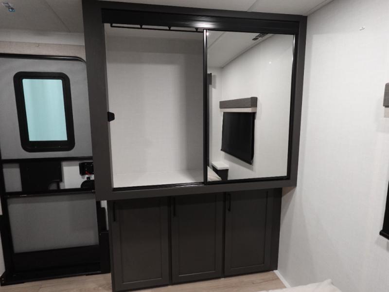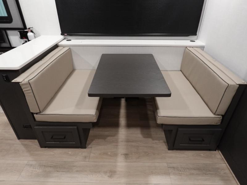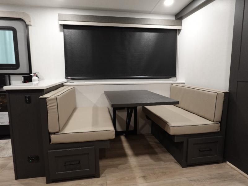 Wherever you decide to camp, you can be sure to enjoy your time in this double slide out trailer! The chef of your group will love having a front kitchen with generous counter space plus an exterior griddle when the weather is nice. There is also a 21' awning outdoors, along with Solid Entry Steps, and dual entry doors! A 39" booth dinette provides a place to dine or play a card game after dinner, and the theater seat across from the 40" TV is perfect for movie night. The walk-thru bath leads to the rear master bedroom where you'll find a queen bed, a large wardrobe, and a TV option if you enjoy shows in bed!