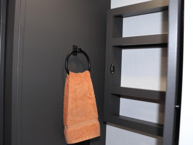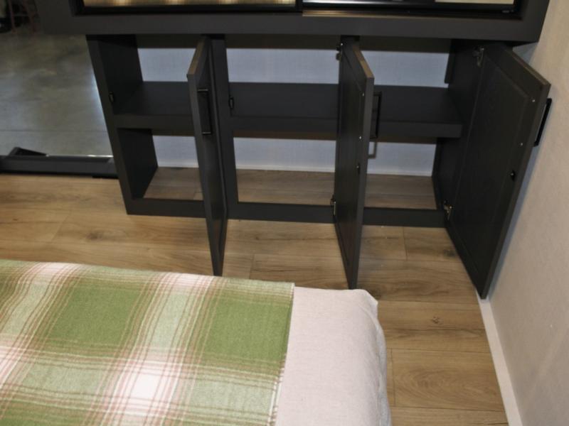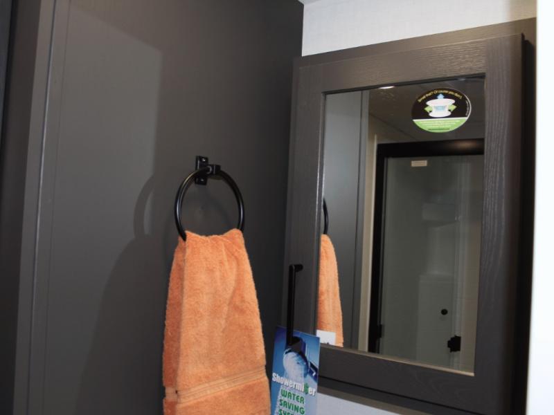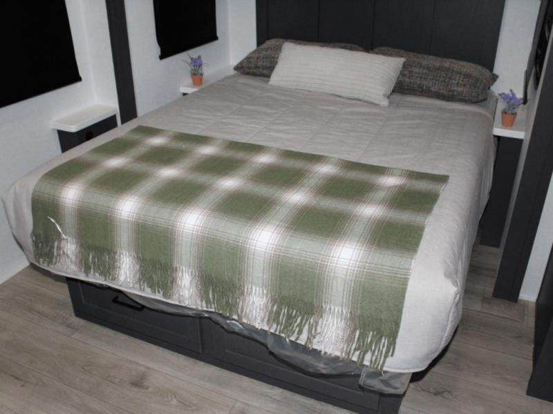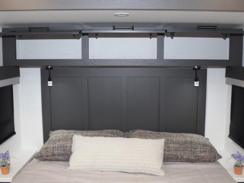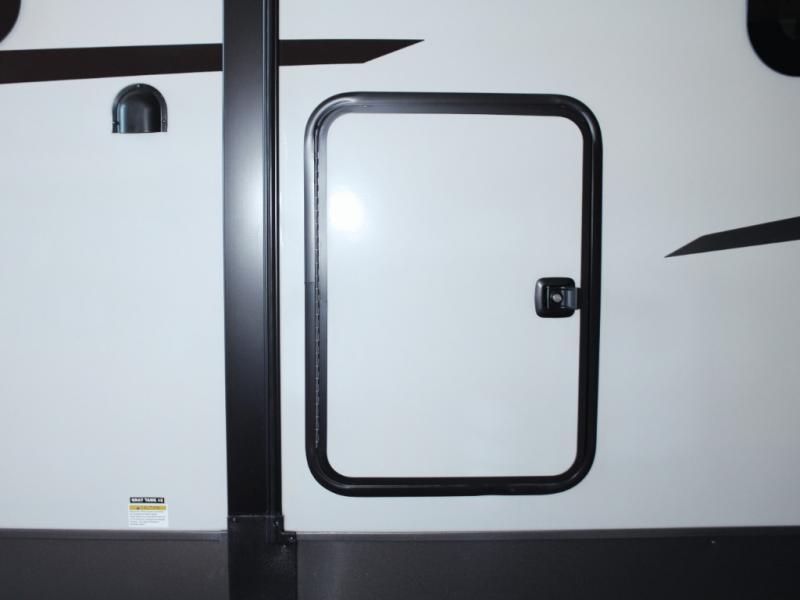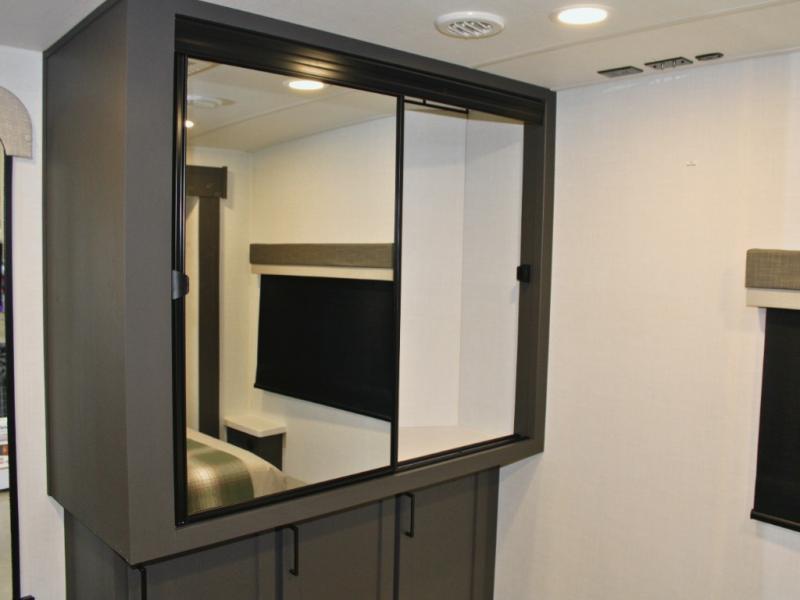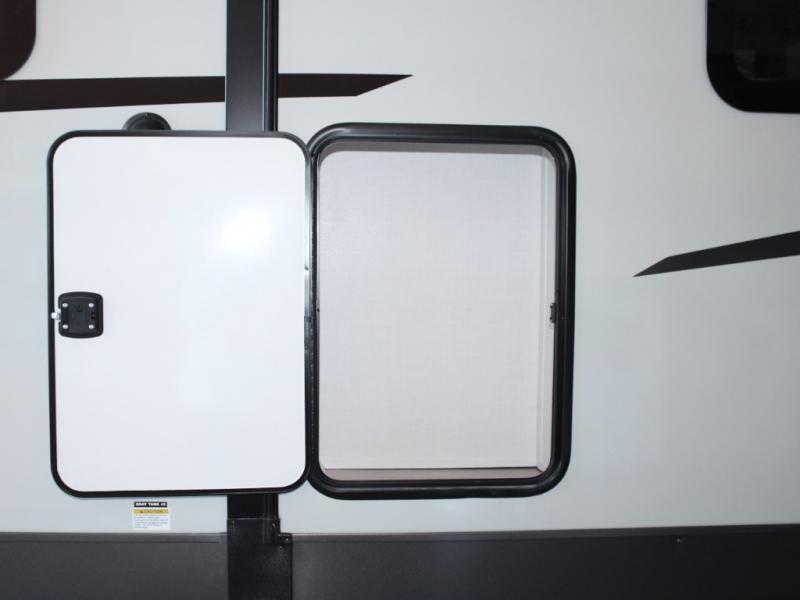 At the end of the day, unwind in your rear private bedroom with a walk-around queen bed, dual wardrobes, and plenty of storage. The optional bedroom TV lets you catch up on shows before bed, and the second exterior entry door gives you easy access in and out without disturbing the rest of the RV.