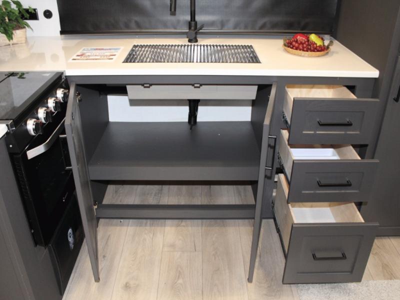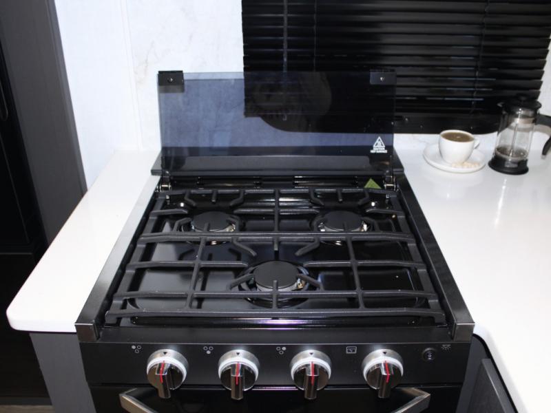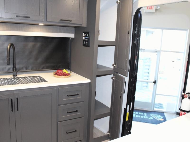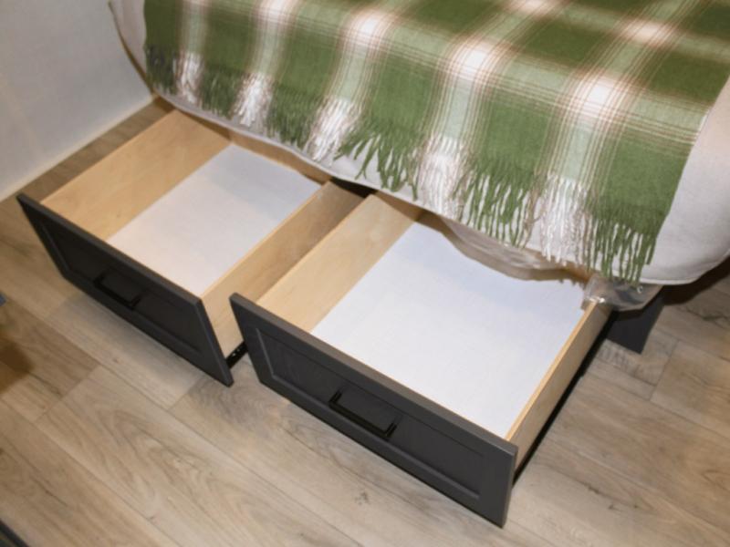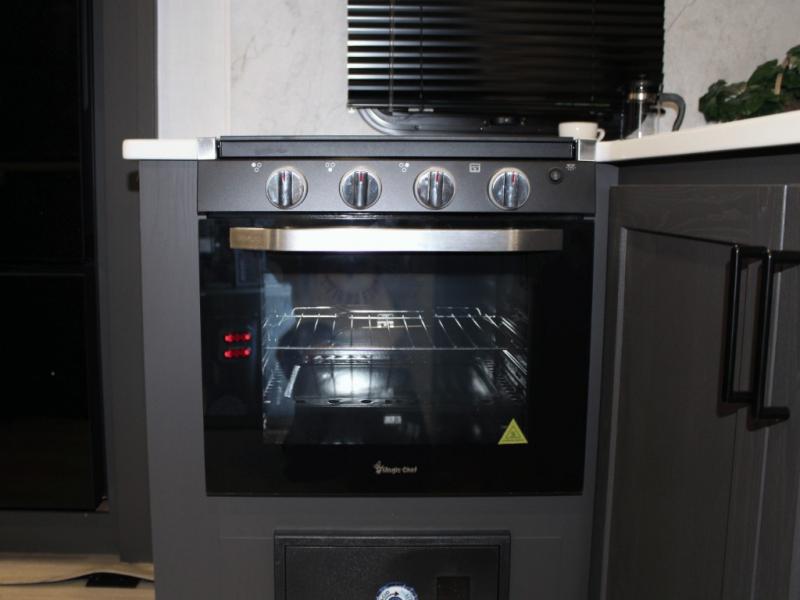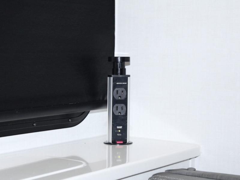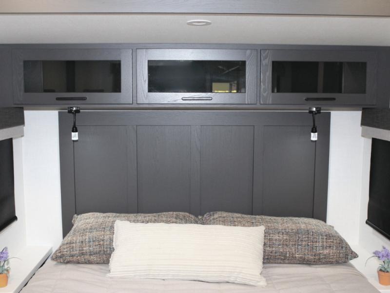 Love to cook on the road? The 2619FK delivers in a big way. The spacious front kitchen gives you abundant counter space, a three-burner range, oven, microwave, and a 12V refrigerator—all laid out for convenience and functionality. When the weather is calling, take your cooking outdoors with the exterior griddle, perfect for burgers, bacon, or breakfast with a view.