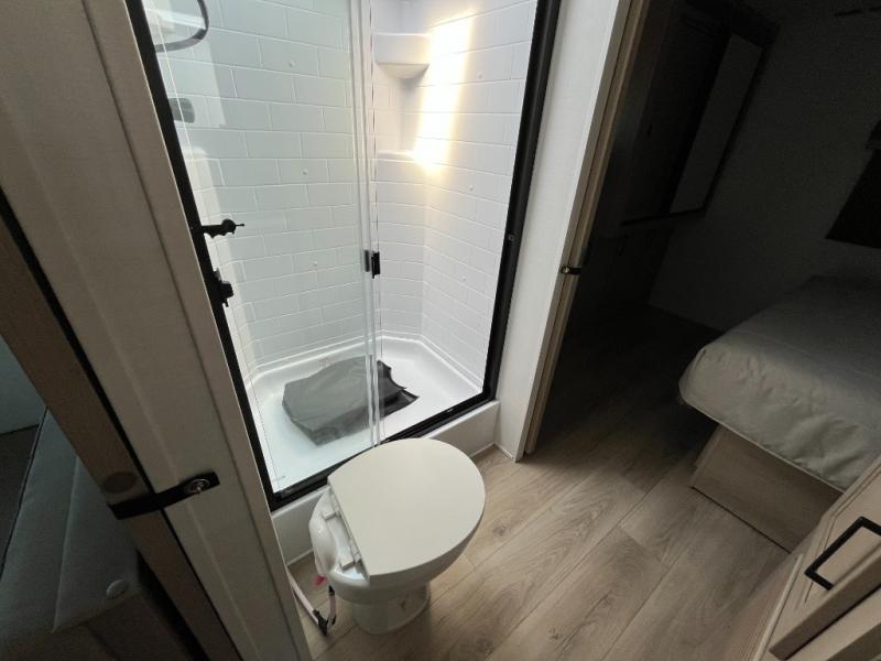 Wherever you decide to camp, you can be sure to enjoy your time in this double slide out trailer! The chef of your group will love having a front kitchen with generous counter space plus an exterior griddle when the weather is nice. There is also a 21' awning outdoors, along with Solid Entry Steps, and dual entry doors! A 39" booth dinette provides a place to dine or play a card game after dinner, and the theater seat across from the 40" TV is perfect for movie night. The walk-thru bath leads to the rear master bedroom where you'll find a queen bed, a large wardrobe, and a TV option if you enjoy shows in bed!