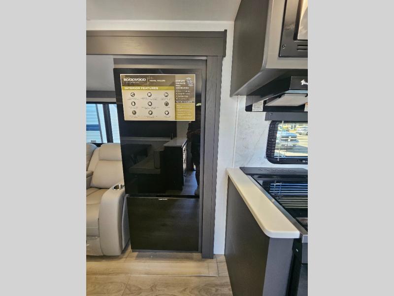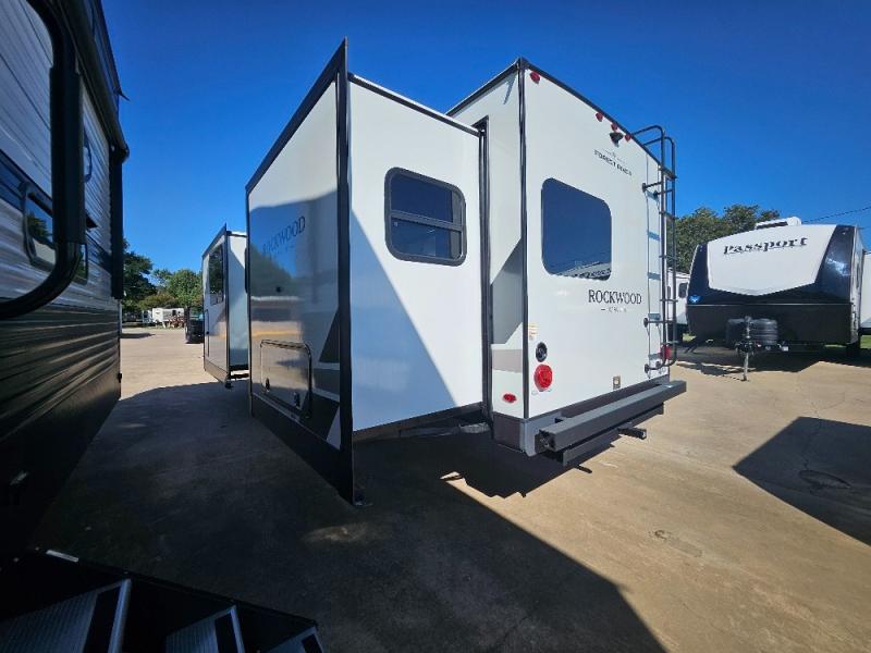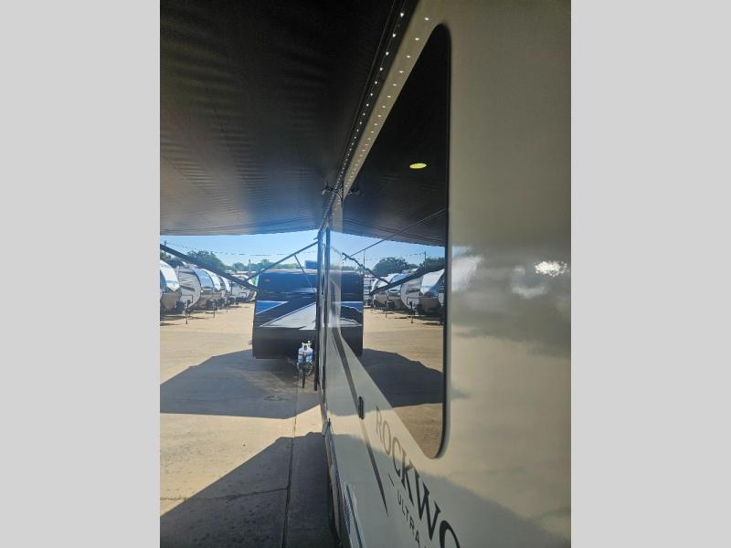 Each Rockwood Ultra Lite travel trailer by Forest River includes superior construction with a high gloss fiberglass cap, aluminum cage construction, and a power awning with LED lighting for a cozy and functional outdoor space. The torsion axle, power tongue jack will make towing smooth and hassle-free, along with the nitrogen filled, Goodyear Endurance tires and the tire pressure monitor system. Interior comforts include kitchen sink with high rise faucet, hidden hinge cabinet doors, and roller shades to name a few. Choose a Rockwood Ultra Lite travel trailer today!