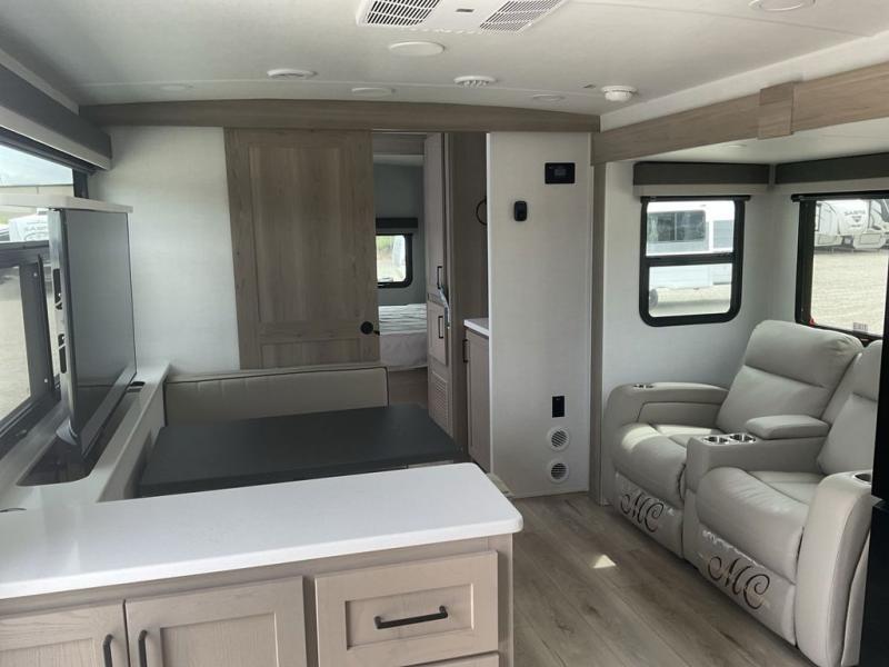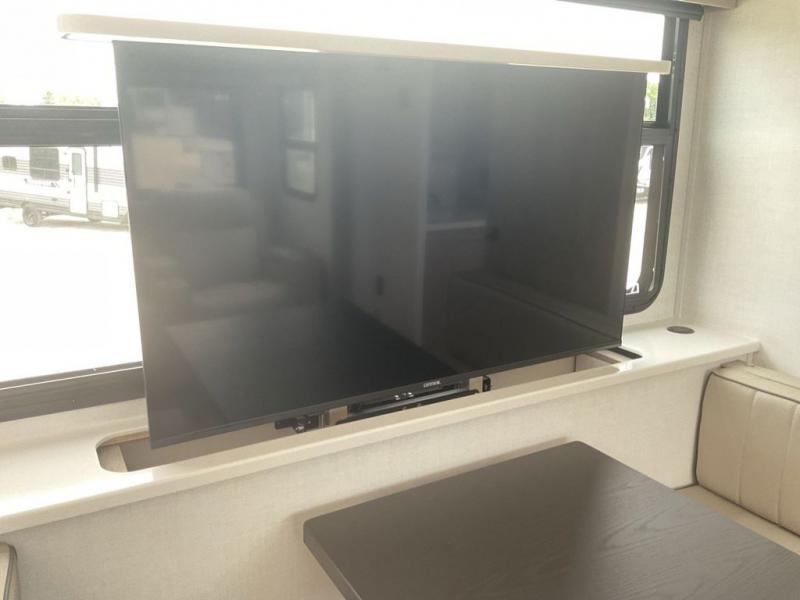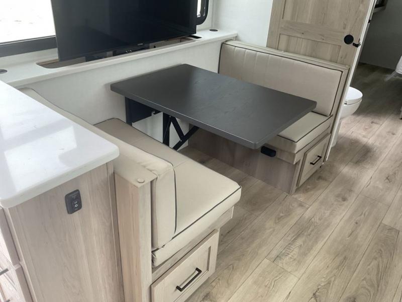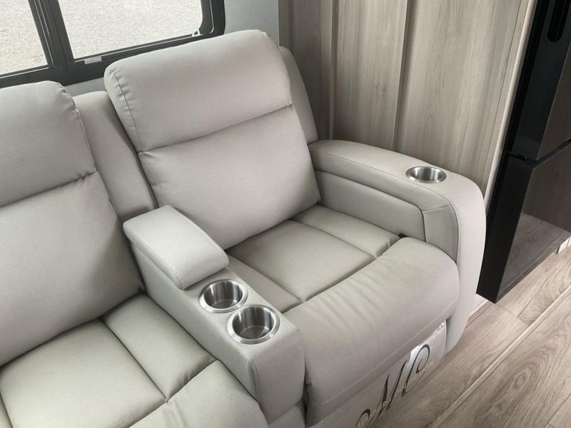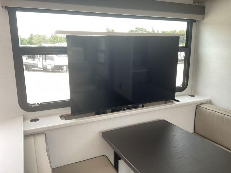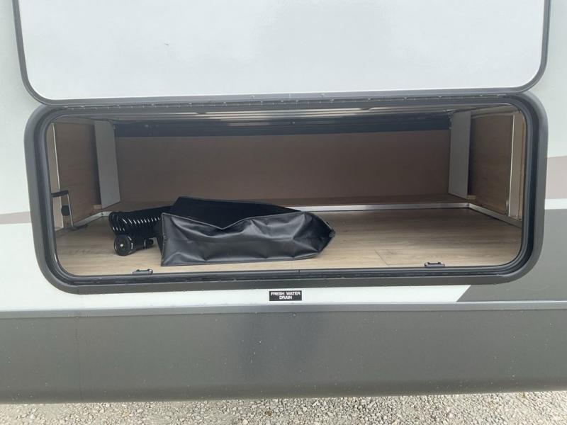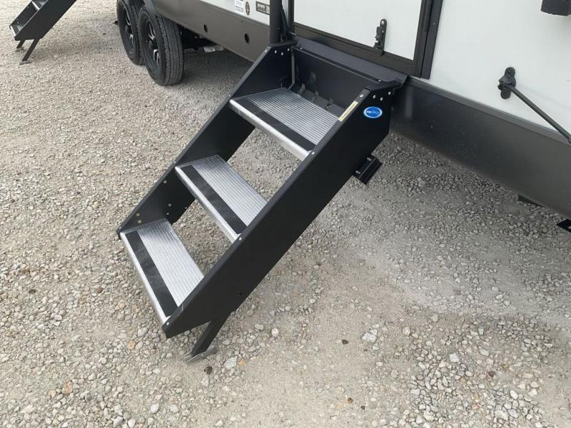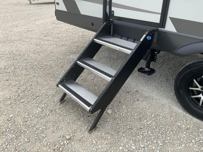 Wherever you decide to camp, you can be sure to enjoy your time in this double slide out trailer! The chef of your group will love having a front kitchen with generous counter space plus an exterior griddle when the weather is nice. There is also a 21' awning outdoors, along with Solid Entry Steps, and dual entry doors! A 39" booth dinette provides a place to dine or play a card game after dinner, and the theater seat across from the 40" TV is perfect for movie night. The walk-thru bath leads to the rear master bedroom where you'll find a queen bed, a large wardrobe, and a TV option if you enjoy shows in bed!
