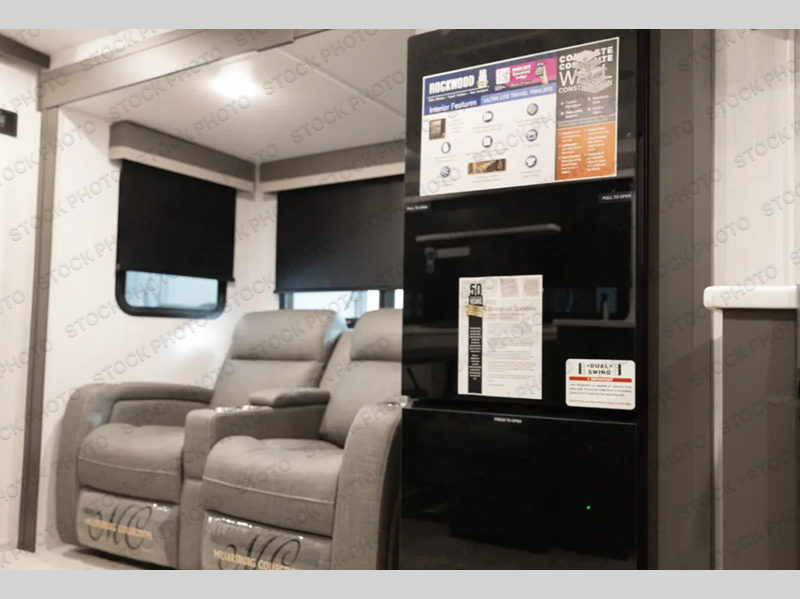 Each Rockwood Ultra Lite travel trailer by Forest River includes superior construction with a high gloss front cap, laminated white fiberglass sidewalls, and tinted frameless windows for a sleek look. The torsion axle, Rubber-Ryde suspension will make towing smooth and hassle-free, along with the nitrogen filled, Goodyear Endurance tires and the tire pressure monitor system. Interior comforts include designer kitchen backsplash, solid wood cabinet doors with hidden hinges, and night roller shades to name a few. Choose a Rockwood Ultra Lite travel trailer today!