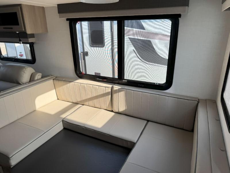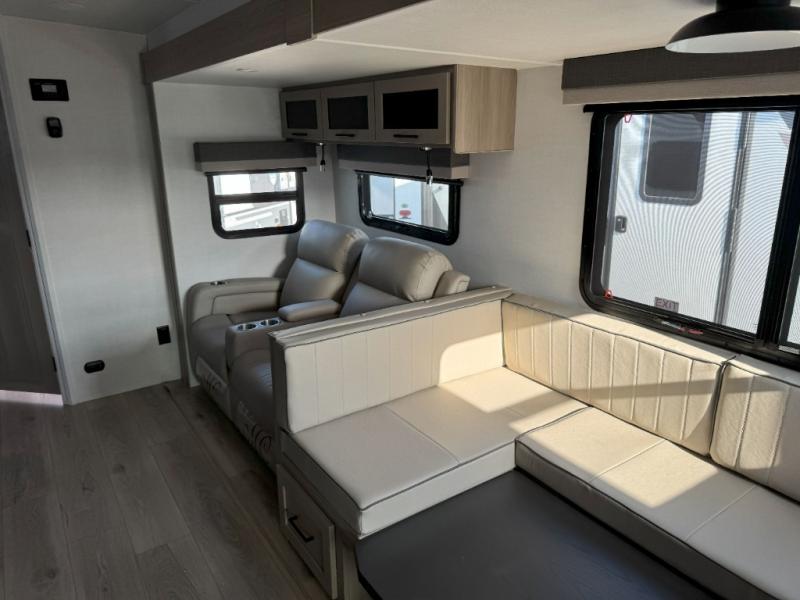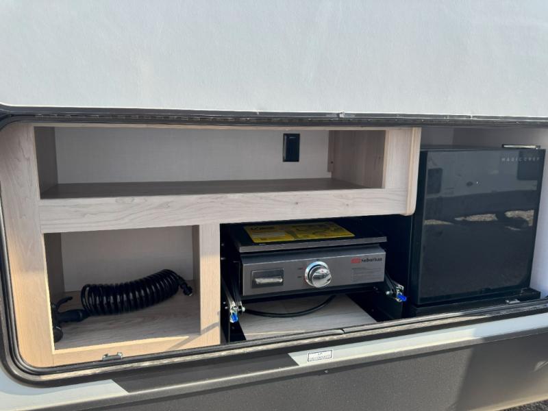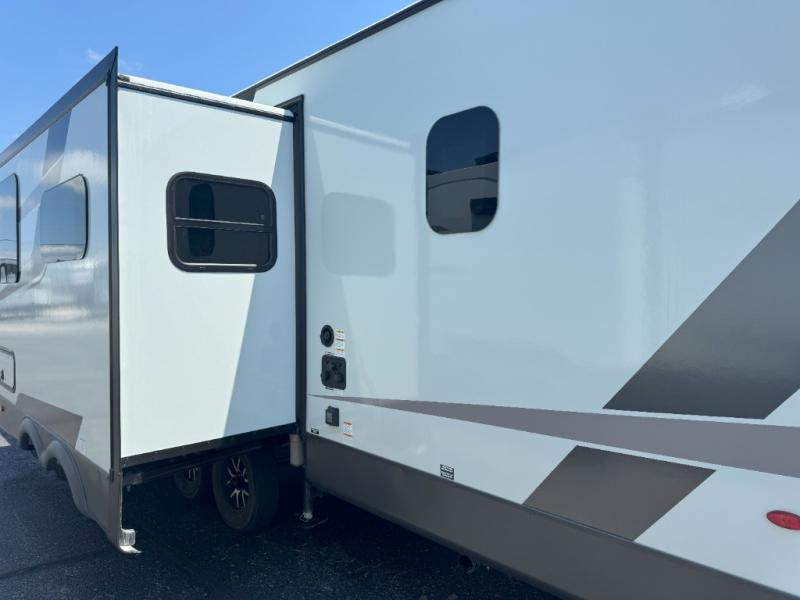 Looking for a trailer that sleeps eight, allows you to cook indoors or outdoors, and provides added interior space? This trailer provides for those wants and needs, and even more! The outside kitchen gives you more choices when feeding the masses along with the outside griddle, and the interior kitchen includes an L-shaped area for the cook to have their own space with full amenities including a walk-in pantry to bring along everything they need. The full bathroom will keep everyone refreshed, and the theater seating and U-shaped dinette offer seating inside to enjoy the Smart TV and fireplace. There is plenty of storage found throughout the interior, and along the exterior you will find several places to stow your outdoor items including in the pass thru storage with an optional steel sliding tray. There is even a front door option if you prefer to have dual entry doors!