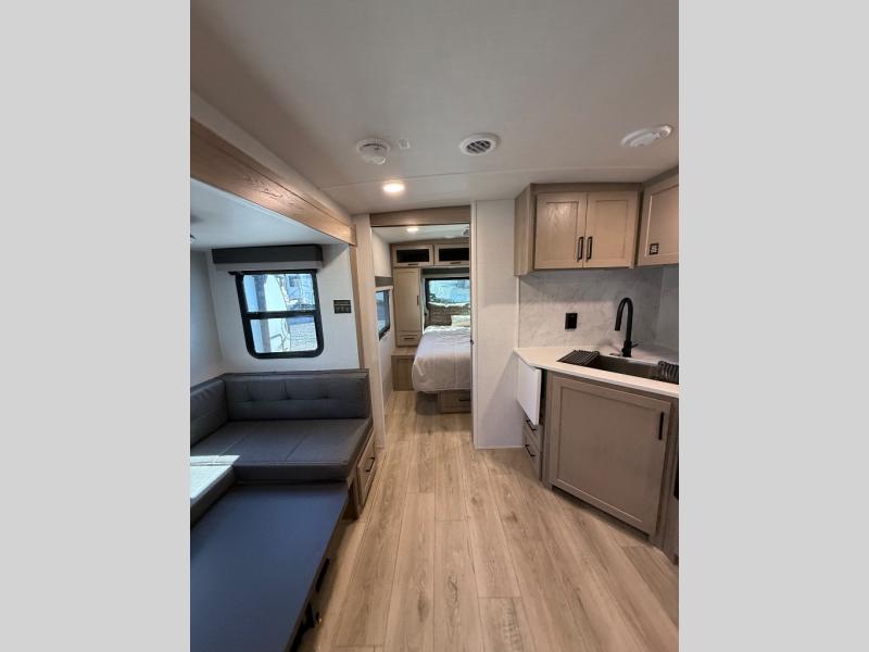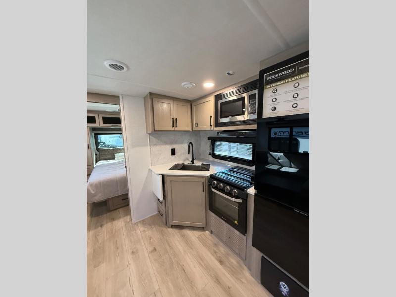 Each Rockwood Ultra Lite travel trailer by Forest River includes superior construction with a high gloss front cap, laminated white fiberglass sidewalls, and tinted frameless windows for a sleek look. The torsion axle, Rubber-Ryde suspension will make towing smooth and hassle-free, along with the nitrogen filled, Goodyear Endurance tires and the tire pressure monitor system. Interior comforts include designer kitchen backsplash, solid wood cabinet doors with hidden hinges, and night roller shades to name a few. Choose a Rockwood Ultra Lite travel trailer today!